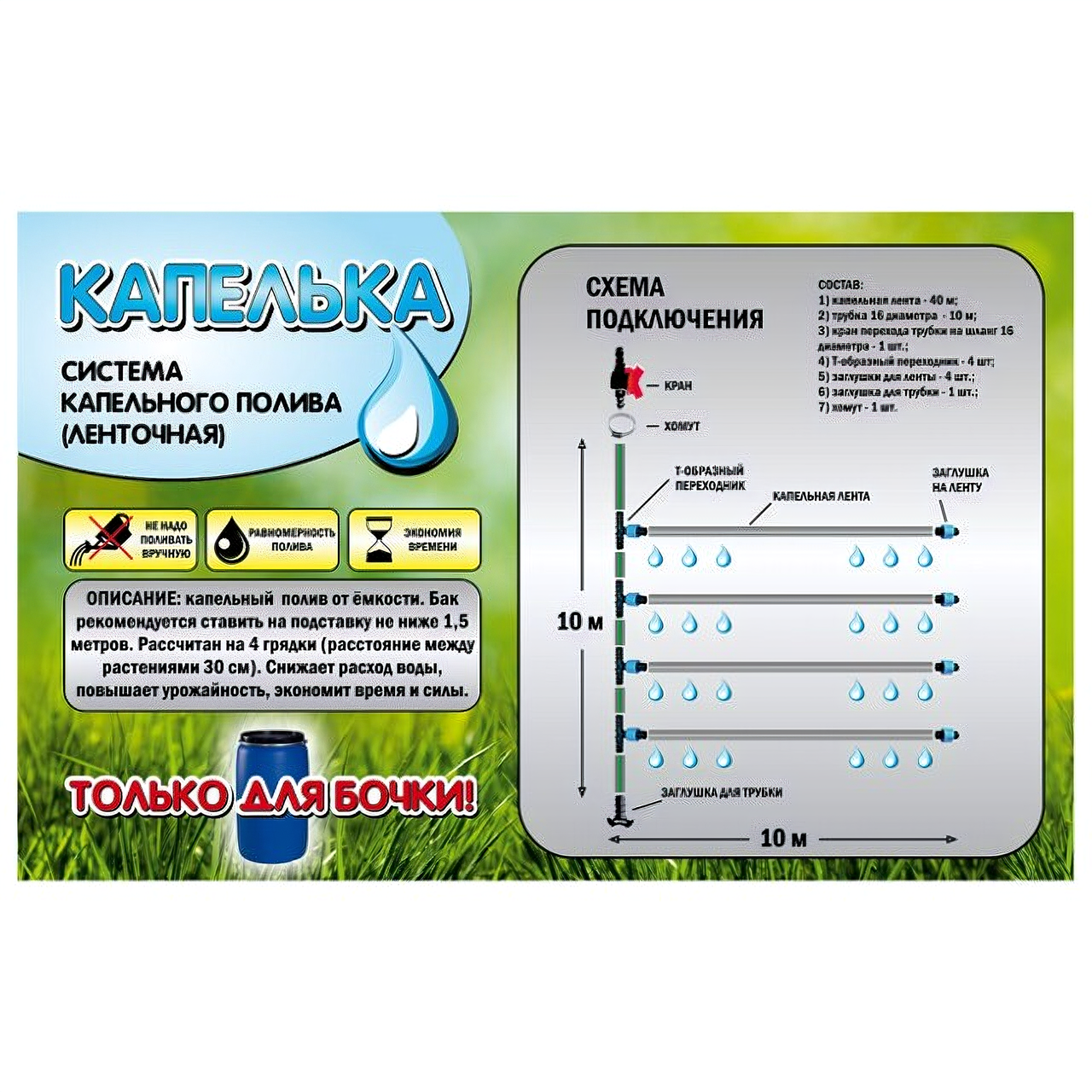 Система капельного полива "Капелька" (ленточная), (ДС.060053) MP-У