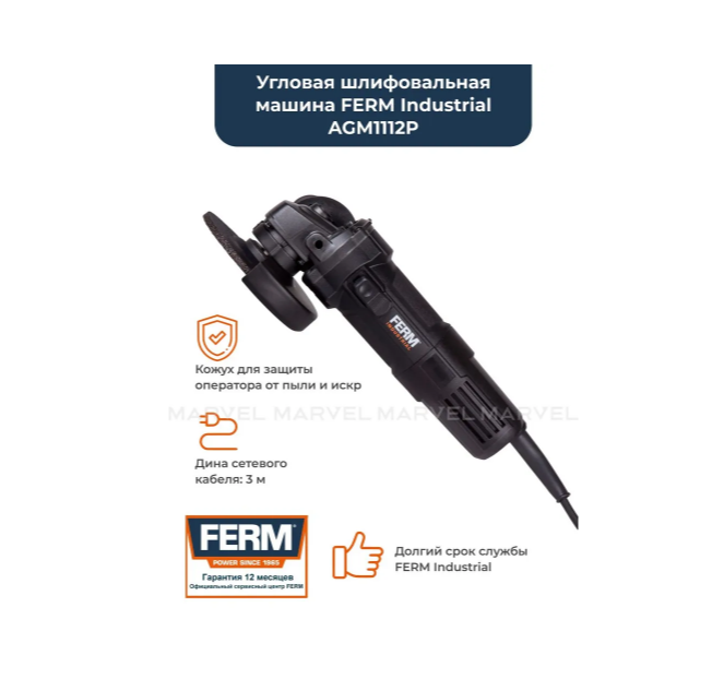 шлифмашина угловая FERM AGM1112P 115мм 710Вт интересное: