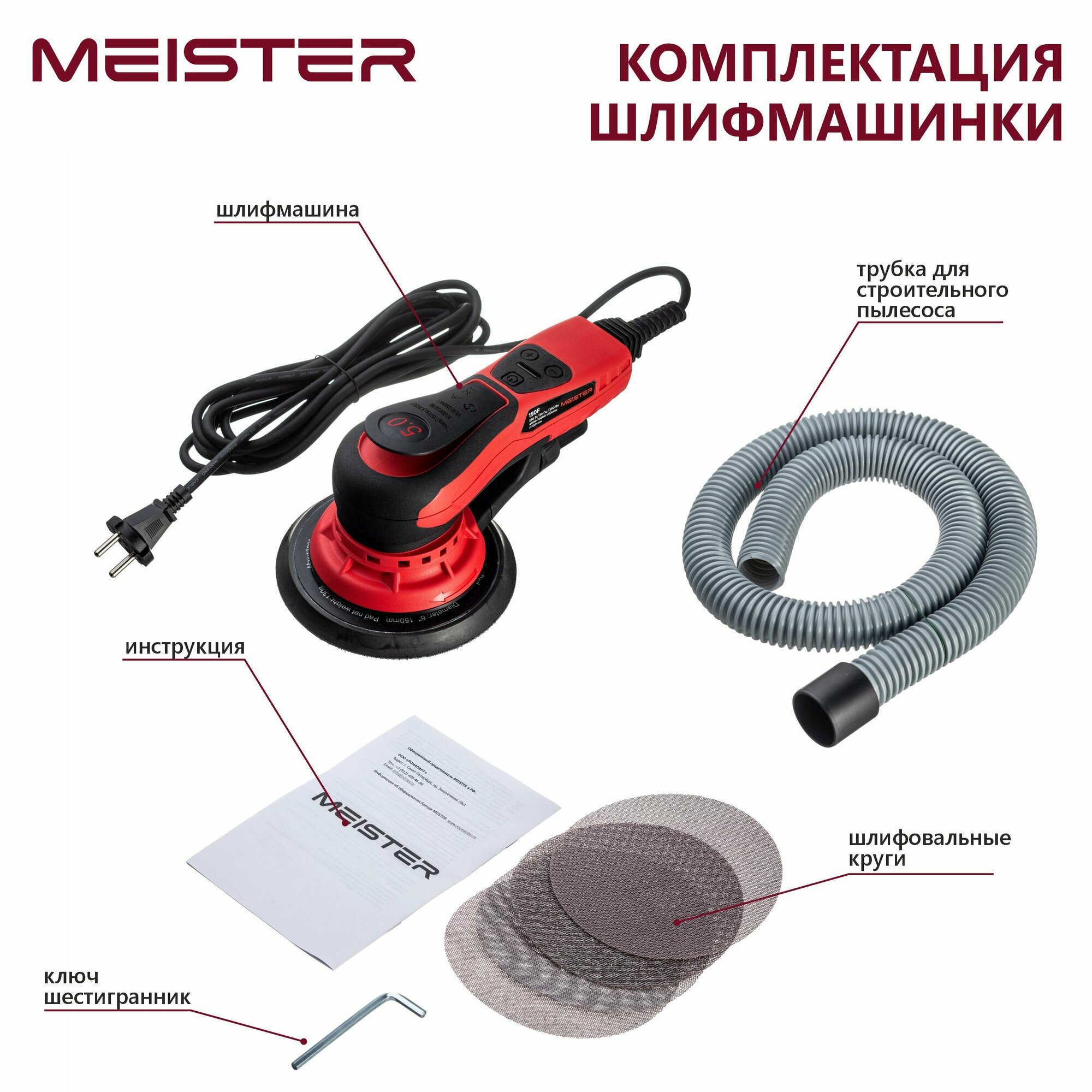 Шлифовальная машинка эксцентриковая MEISTER 150f, ход эксцентрика 5.0 интересное:
