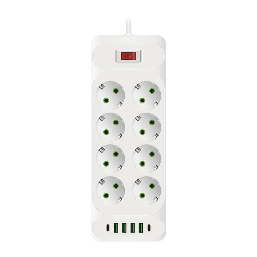 Купить Сетевой фильтр с 8 розетками 4 USB +2 Type-C / Многофункциональный удлинитель с предохранителем, белый