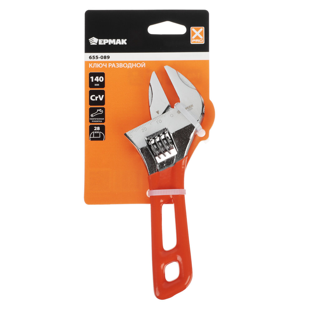 Ключ разводной ермак, 140 мм, CrV, укороченная ручка