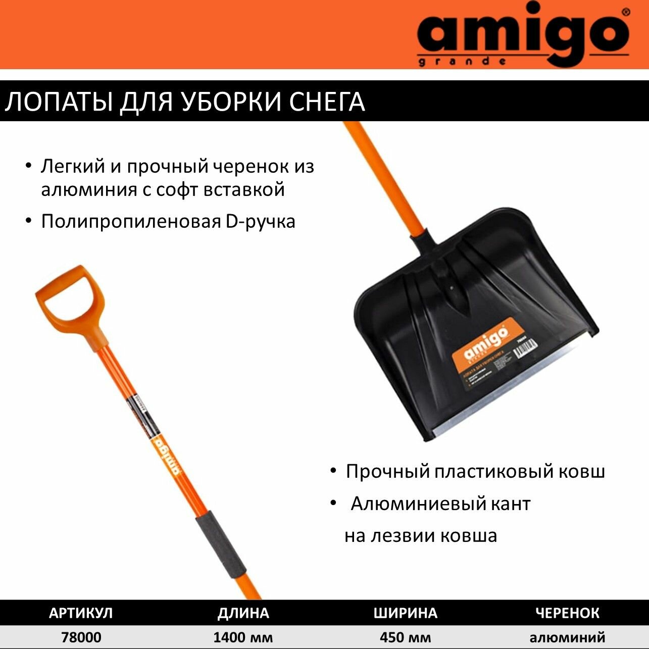 Лопата снеговая пластиковая 445х330мм с алюминиевым черенком и ручкой, AMIGO 78000 (1 шт.) интересное: