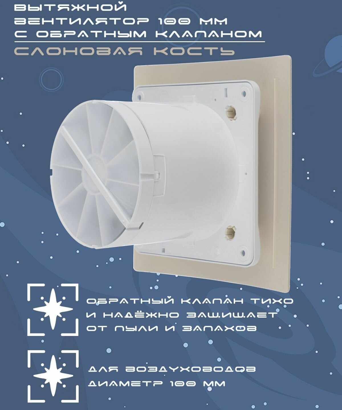 Вентилятор вытяжной декоративный космо диаметр 100 мм слоновая кость с обратным клапаном интересное: