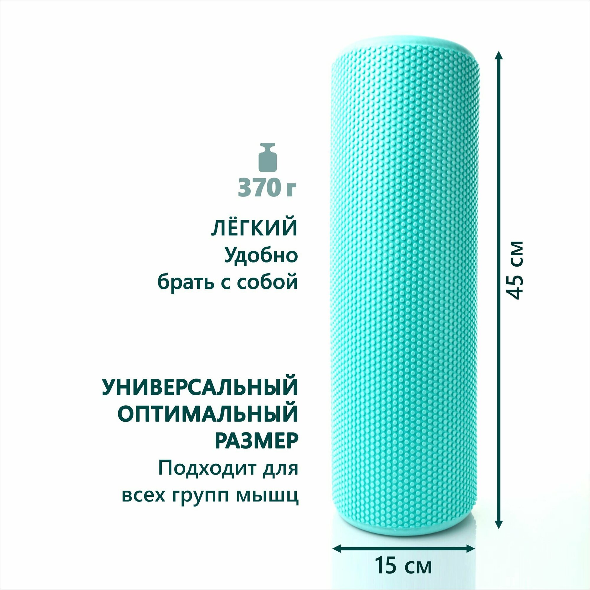 Мфр ролик, Валик для спины массажный, ролл спортивный YourFit, 45 см, бирюзовый