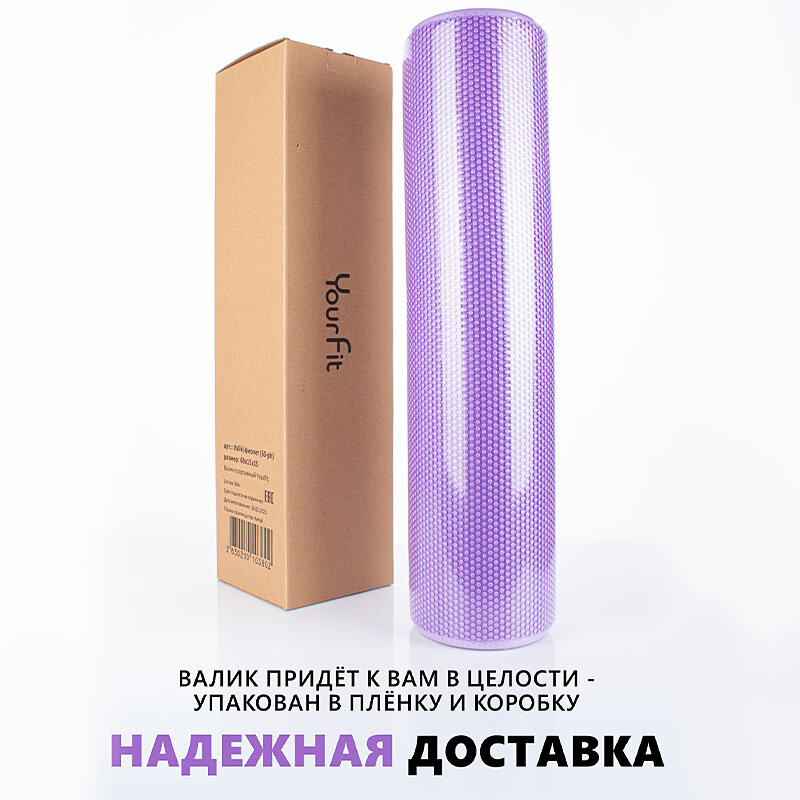 Мфр ролик, Валик для спины массажный, ролл спортивный YourFit, 45 см, фиолетовый