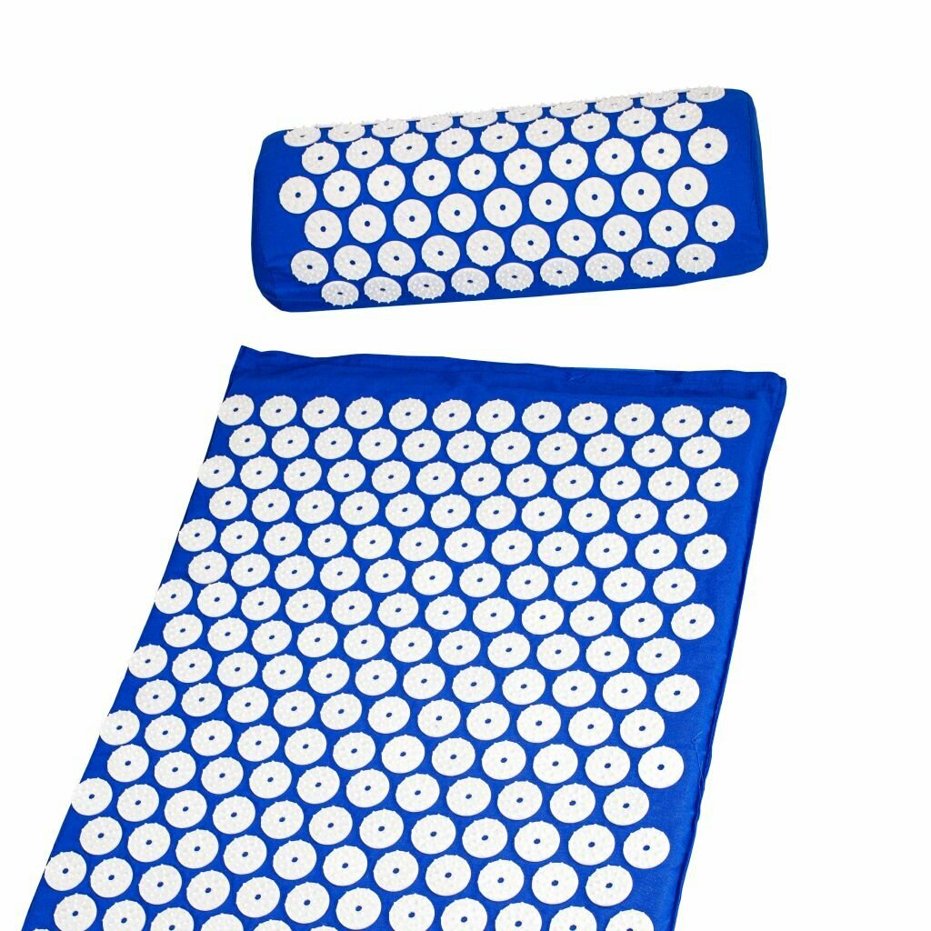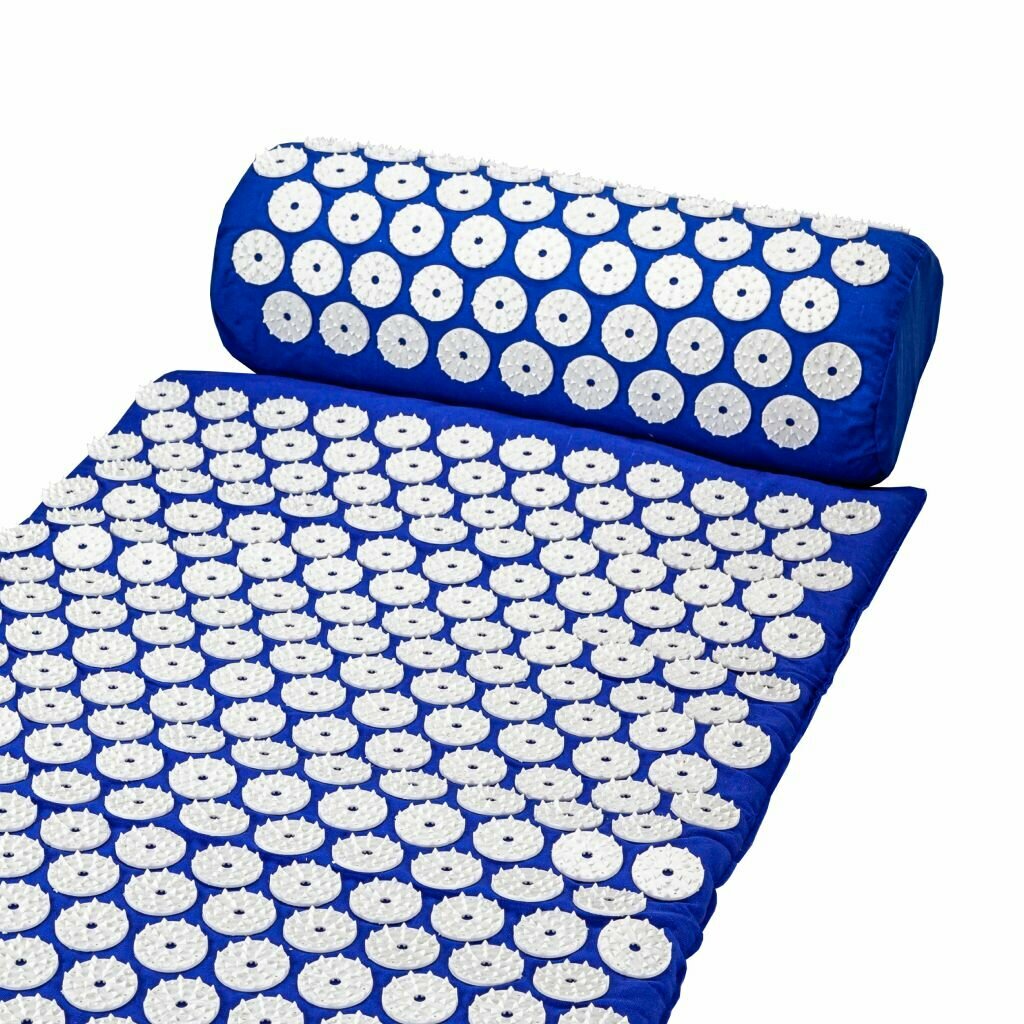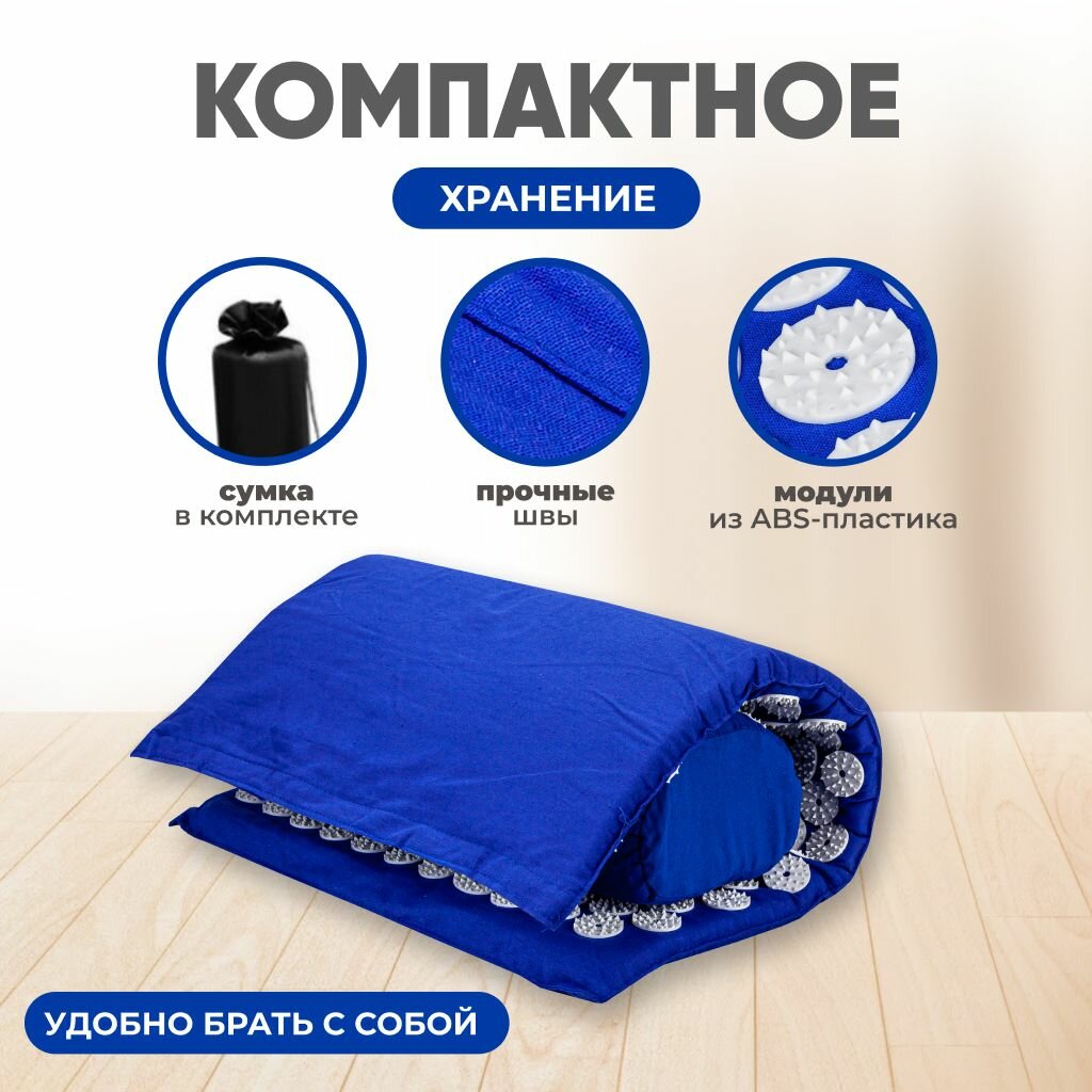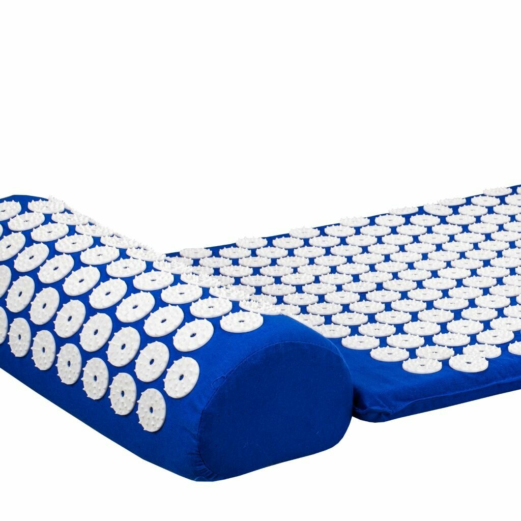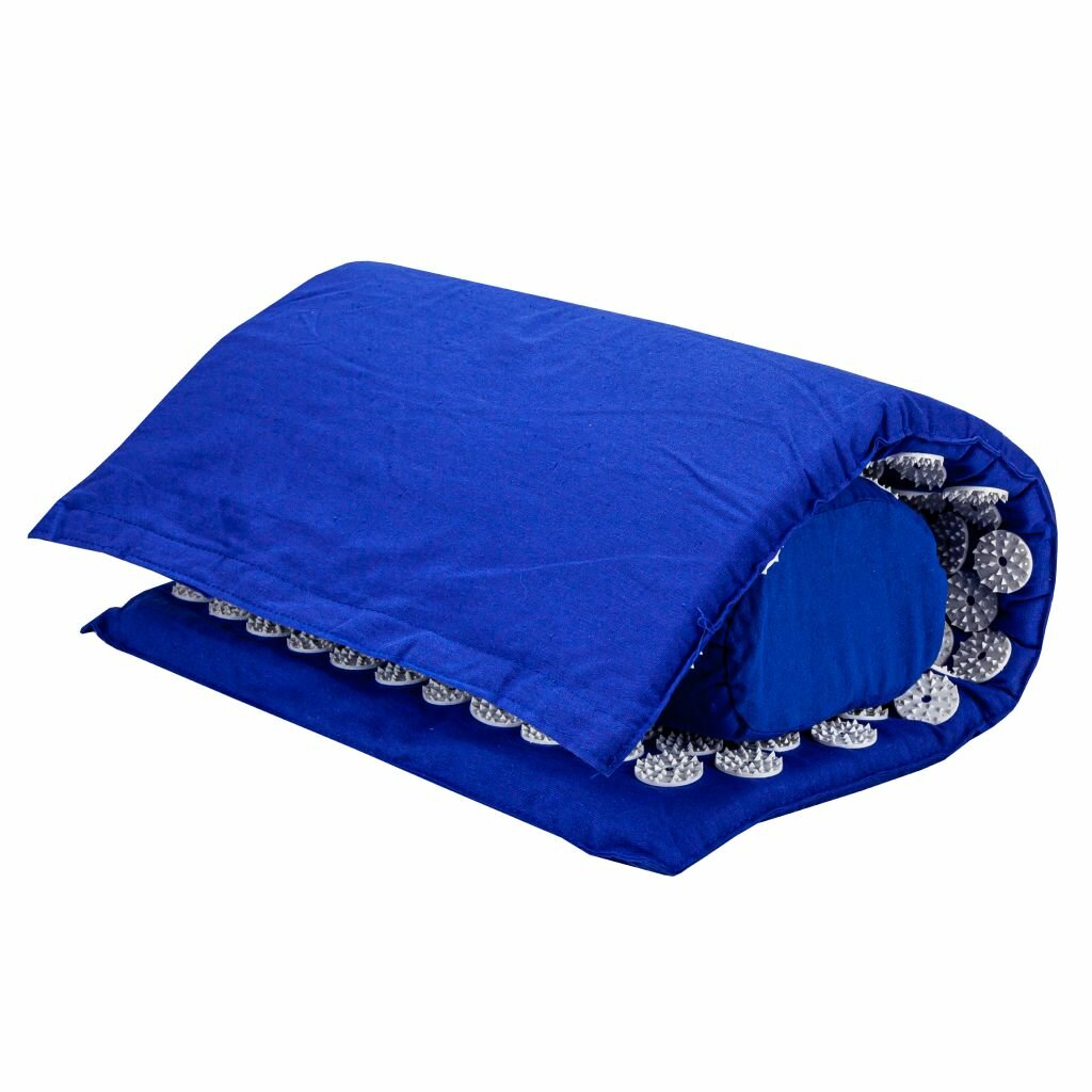 Аппликатор Кузнецова - массажный акупунктурный коврик для ног и валик в чехле (синий)