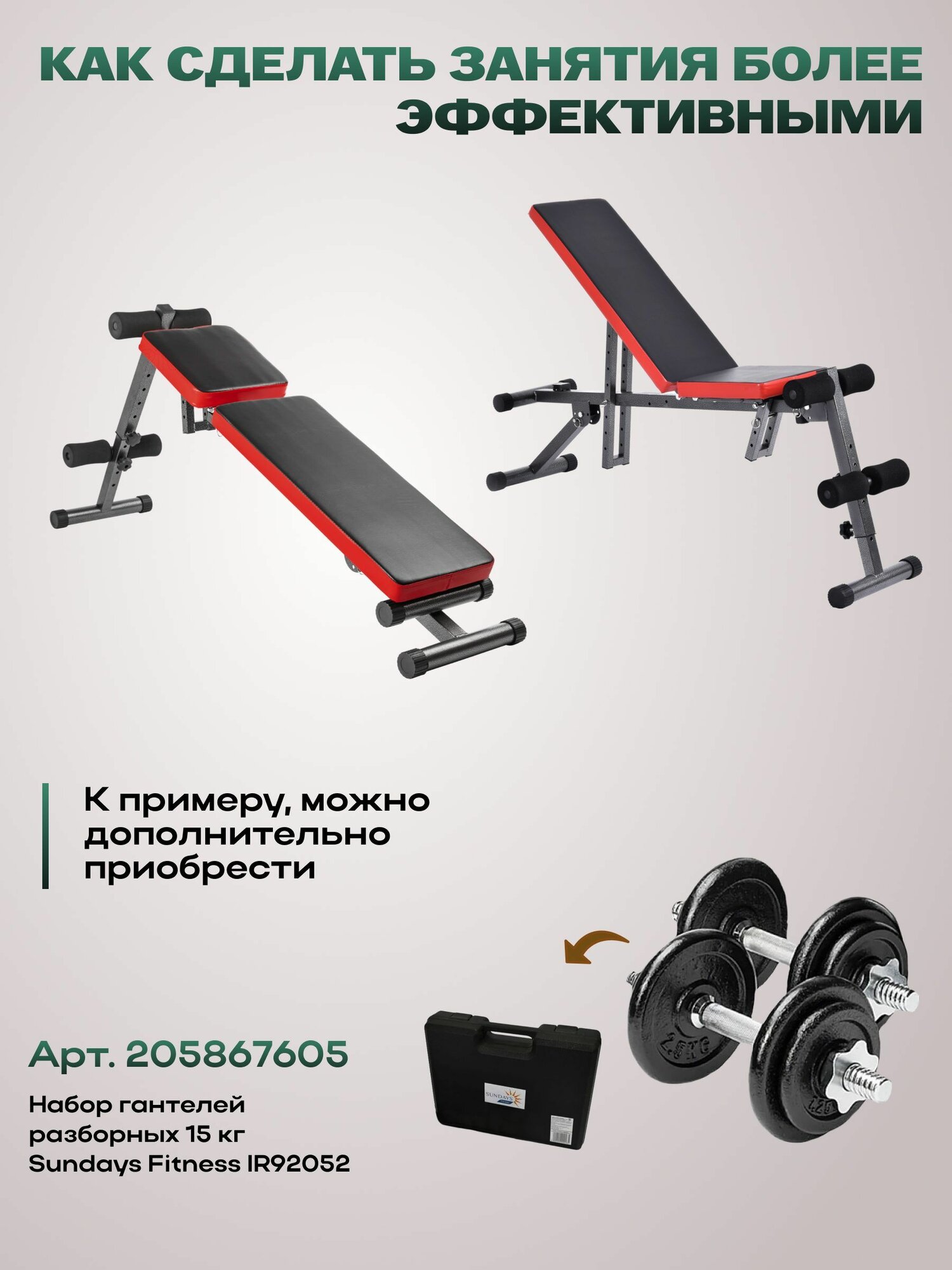 Скамья для жима, скамья для пресса и спины, многофункциональная Sundays Fitness IRSB202B интересное: