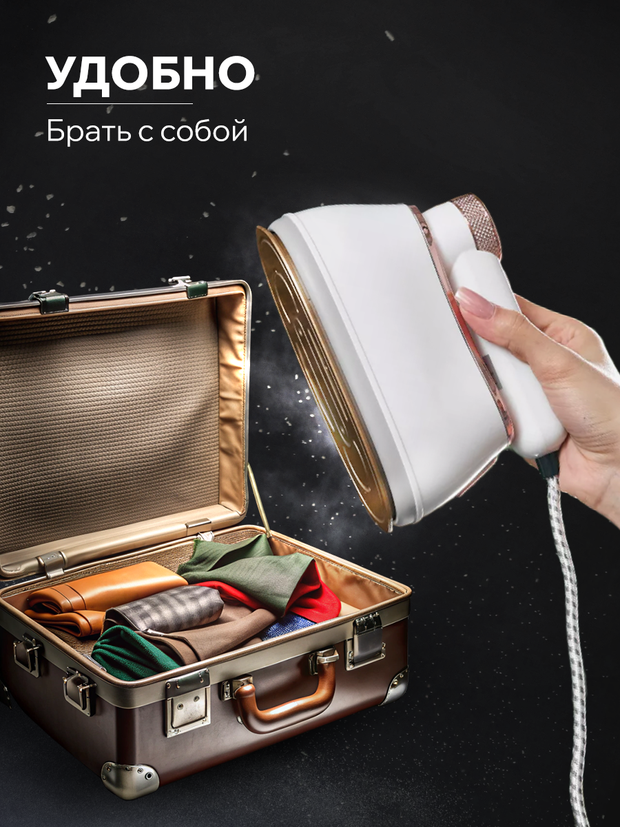Ручной отпариватель для одежды, дорожный, с насадкой щетка, щеткой белый, парогенератор для вещей, паровой, электрический, для дома