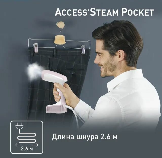 Ручной отпариватель Tefal Access Steam Pocket DT3050E1, белый/розовый