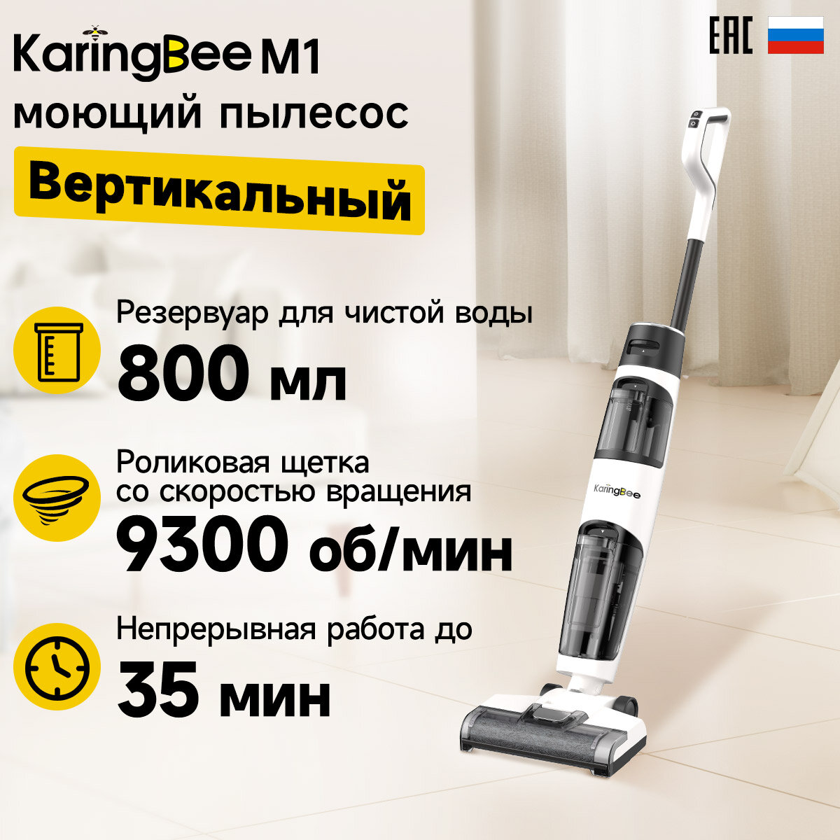 3 в 1 Вертикальный моющий пылесос KaringBee M1, пылесос, швабра и уборка одним движением (ЕАС-сертификат)