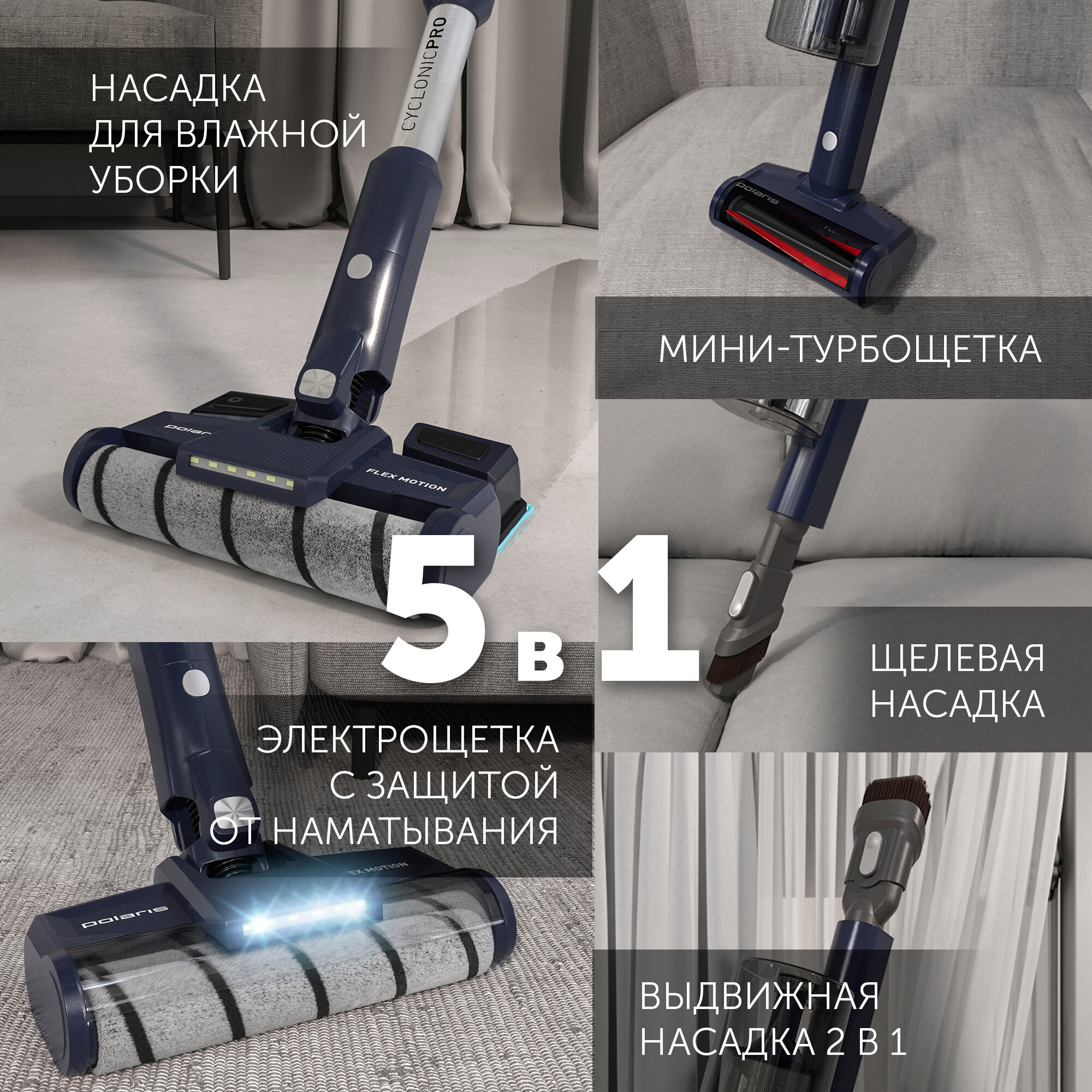 Пылесос вертикальный беспроводной Polaris PVCS 4050 CyclonicPRO, Темно-синий