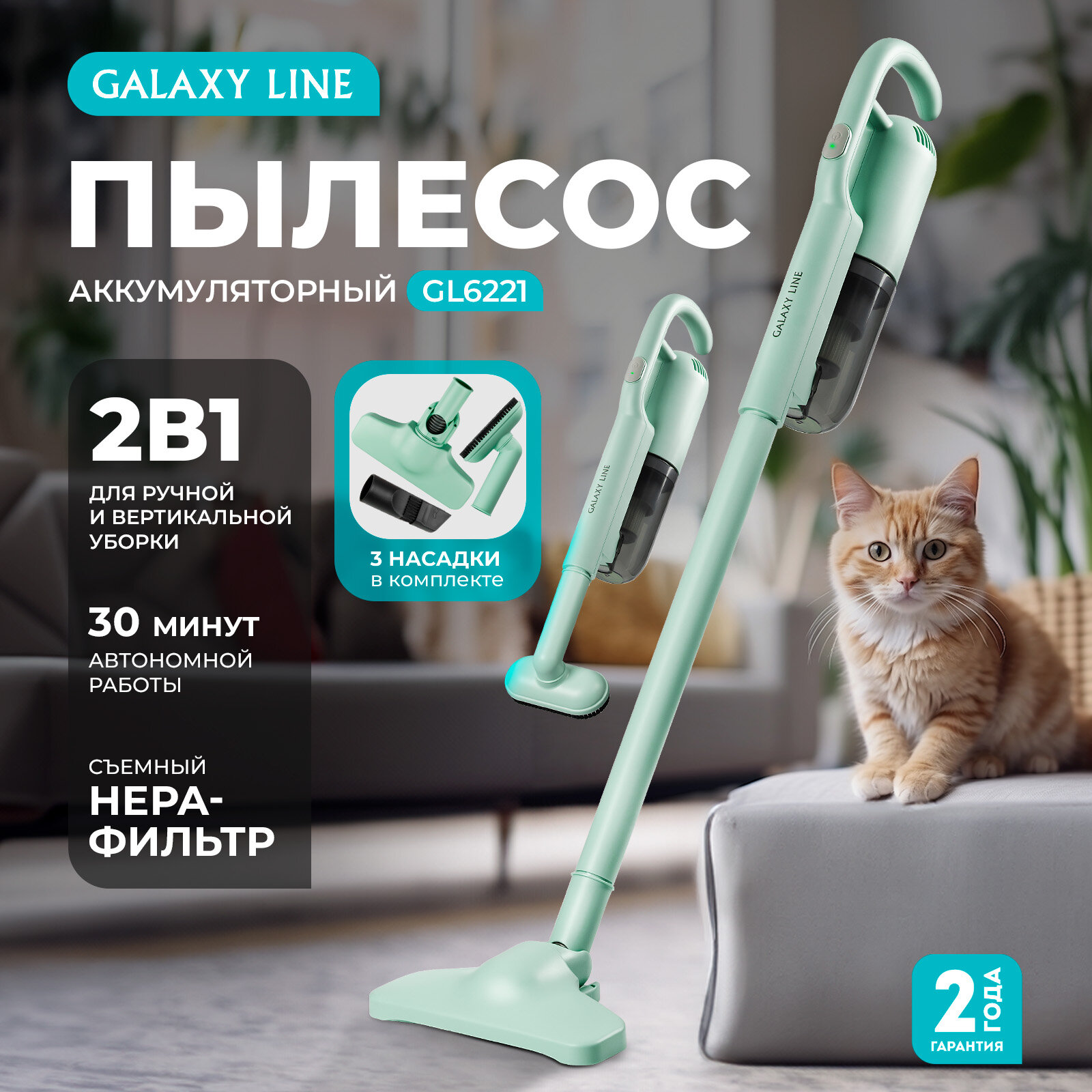 СохранитьПылесос аккумуляторный Galaxy LINE GL 6221, мятный интересное:
