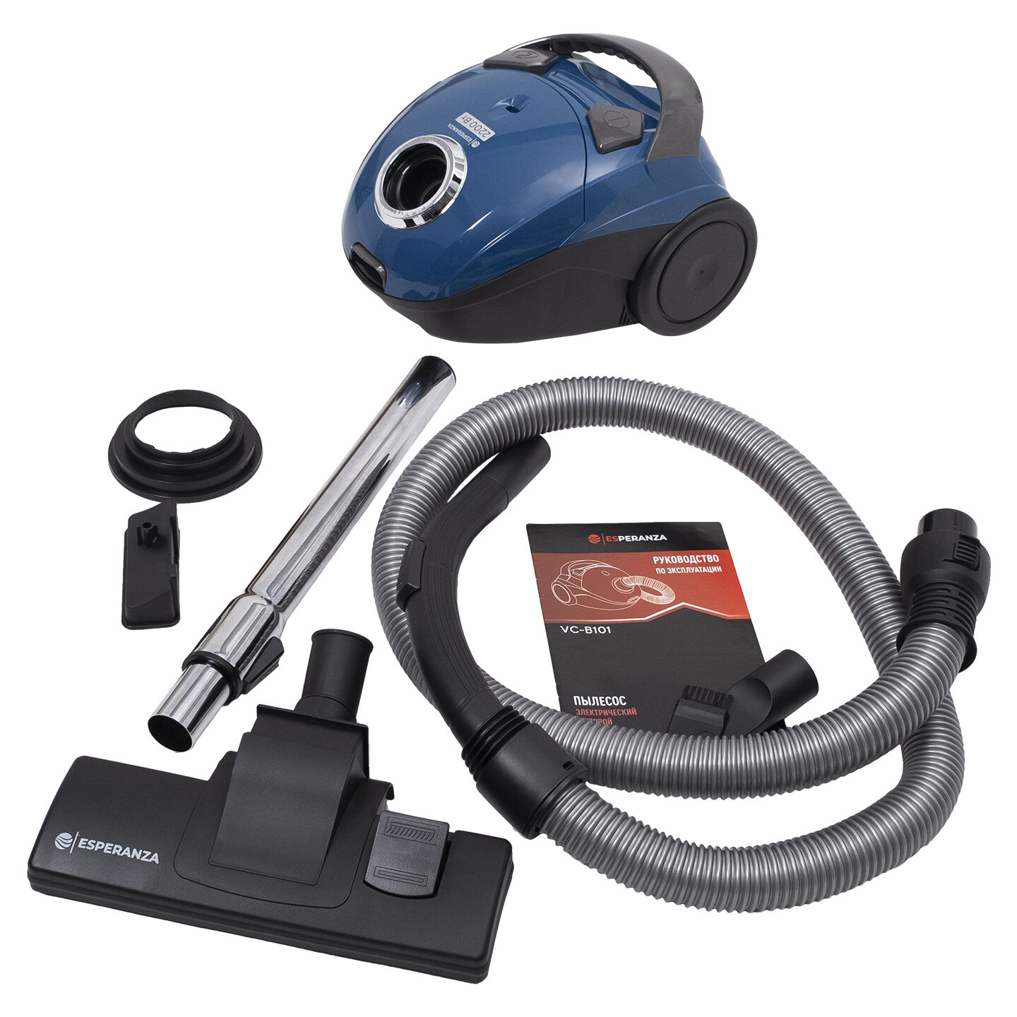 Купить Пылесос для дома бытовой ESPERANZA VC-B101- с мешком на 1,5 литра, мощностью 2200w, шнуром длиной 5м и с 2 насадками. Цвет: синий.