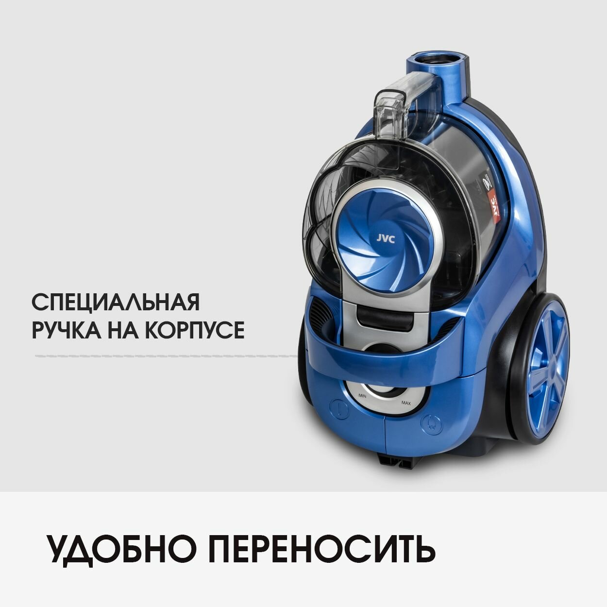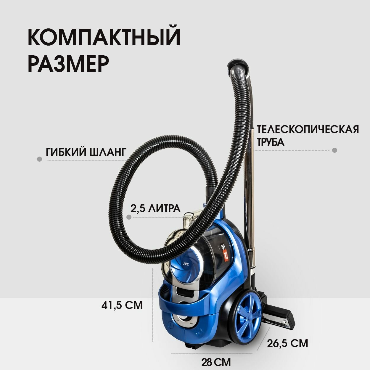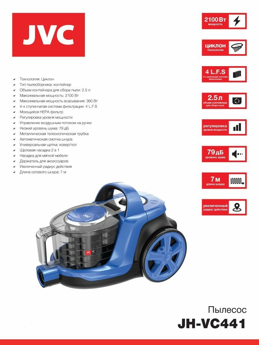 Компактный пылесос для дома с контейнером, мощный 360 Вт (сила всасывания) JVC JH-VC441, 3 насадки интересное: