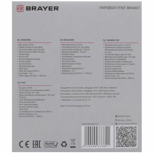 Ниже Вы можете прочитать отзывы на Утюг паровой BRAYER BR4007 3100Вт, 265 мл, 160 г/мин, керамическая подошва, антикапля, самоотчистка, ознакомится с подробными характеристиками, посмотреть интересные обзоры и фотографии на Утюг паровой BRAYER BR4007 3100Вт, 265 мл, 160 г/мин, керамическая подошва, антикапля, самоотчистка.
