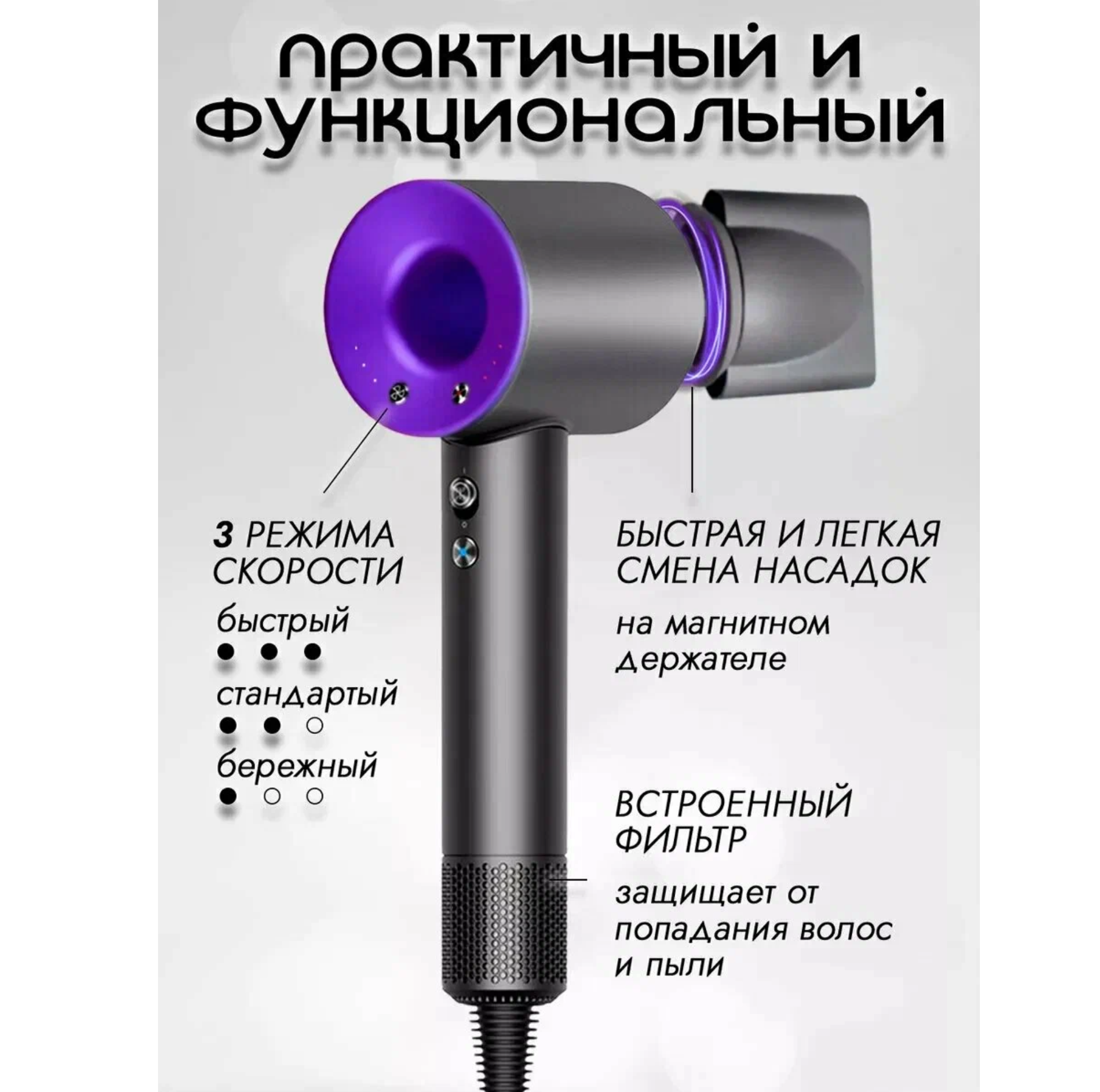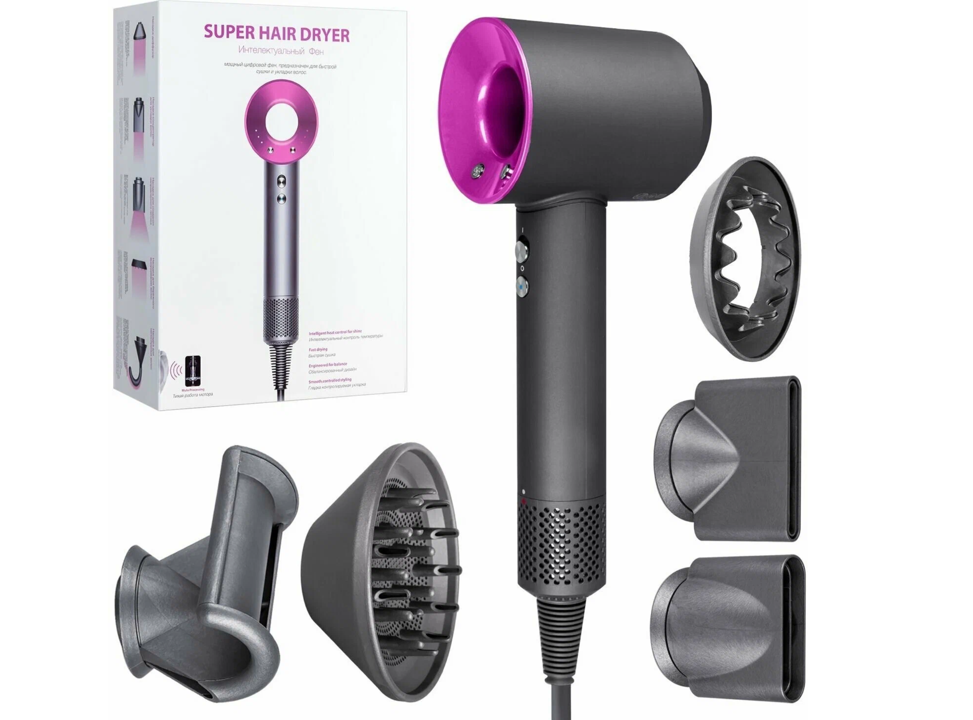 Купить Супер фен Super Hair Dryer с 5 насадками / Фен для волос Супер хайер драйер/3 скорости/ 3 температурных режима / 5 магнитных насадок/новинка 2024