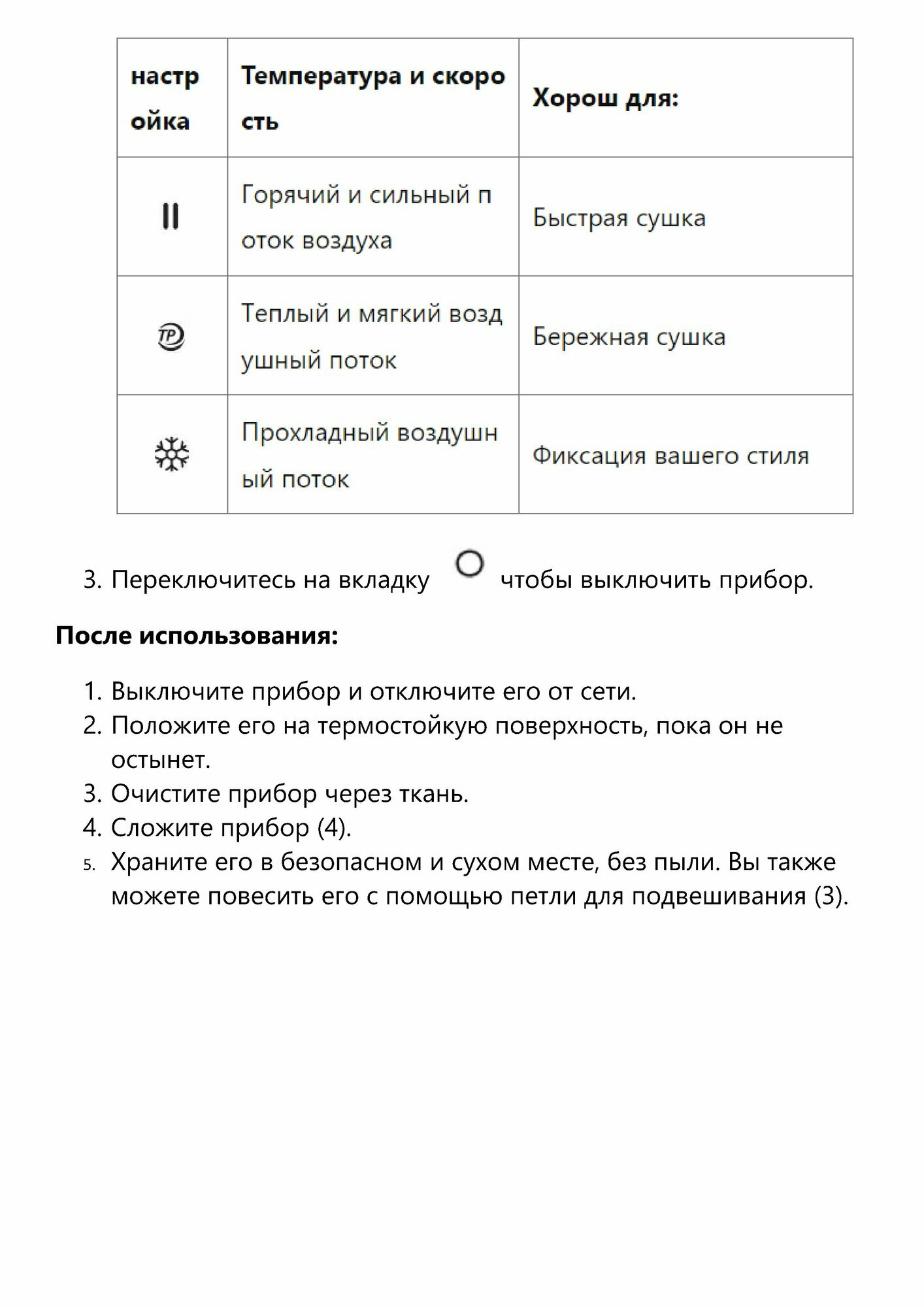 | Дополнительные функции | подача холодного воздуха |