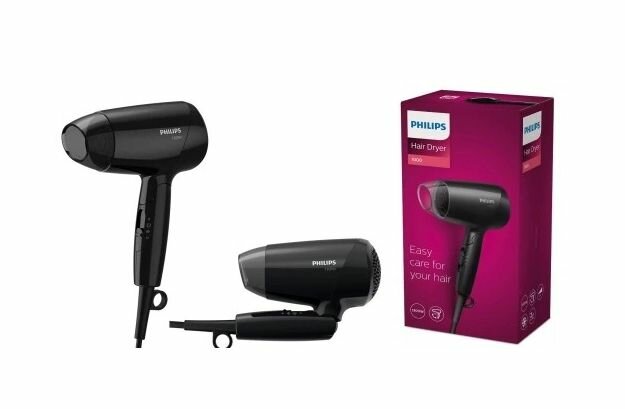 Фен Philips BHC010/10, дорожный, 1200Вт, черный