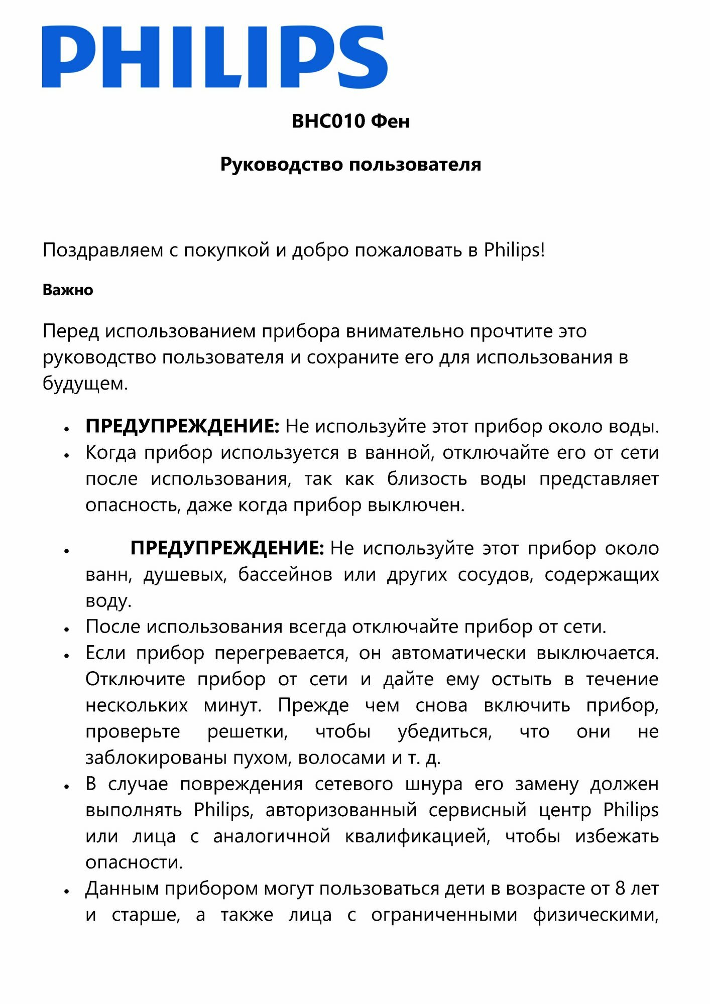 Фен BHC010/10 Philips BHC010/10 . интересное: