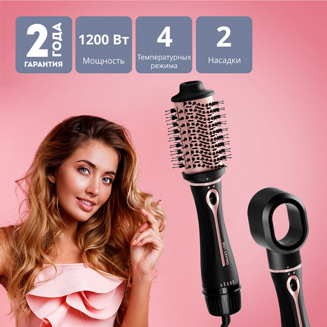 Фен-щетка GALAXY LINE GL4414, с насадками, 1200Вт, черный, длина шнура 1.8м