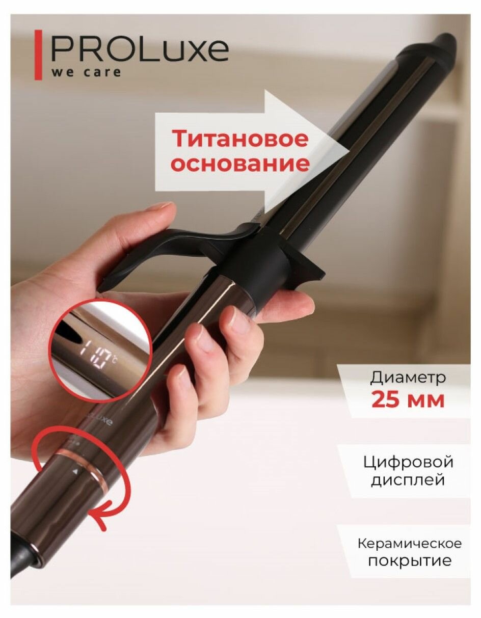 Купить Профессиональные щипцы для завивки волос PROLuxe PL-HCT01, 25мм, LCD дисплей, 7 температурных режимов, Титан, автоотключение