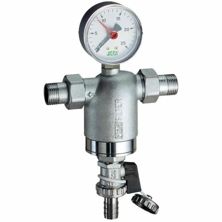 Фильтр Far 1/2" НР-НР, с манометром, 300мкм, Max: 95 °C, 25 бар интересное: