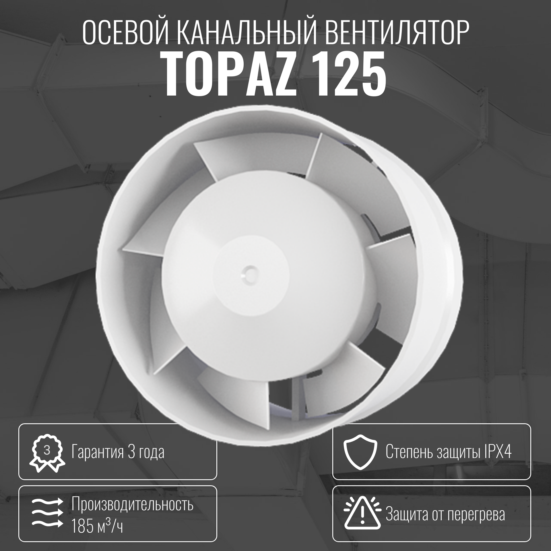 Вентилятор канальный Zernberg Topaz 100 TURBO, повышенная мощность