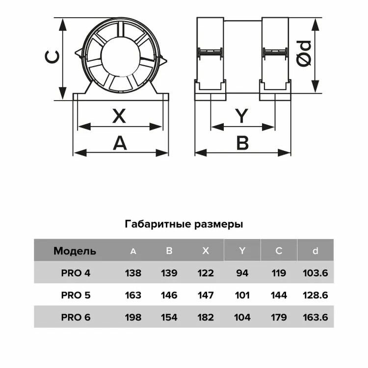 Вентилятор канальный с креплением PRO 6 D160