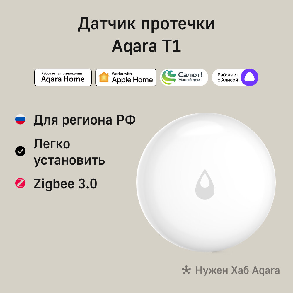 Датчик протечки Aqara Water Leak Sensor T1 (wl-s02d) белый Wl-s02d .