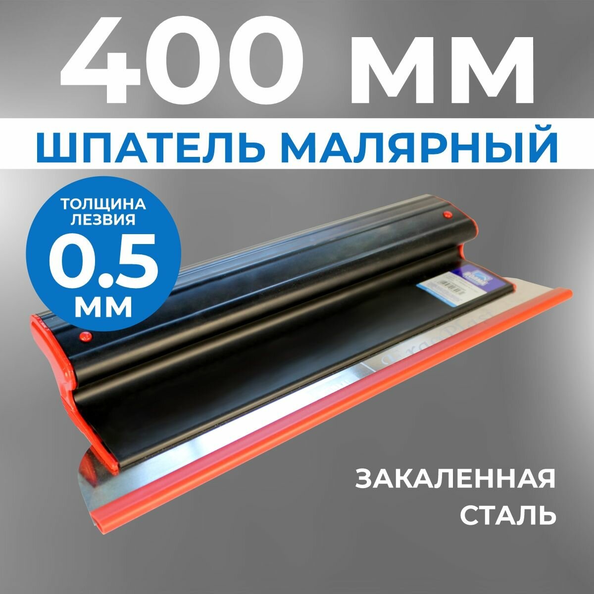 Шпатель для шпаклевки стен EcoLine 400 мм, (комплект: ручка + полотно 0,4 мм), шпатель строительный