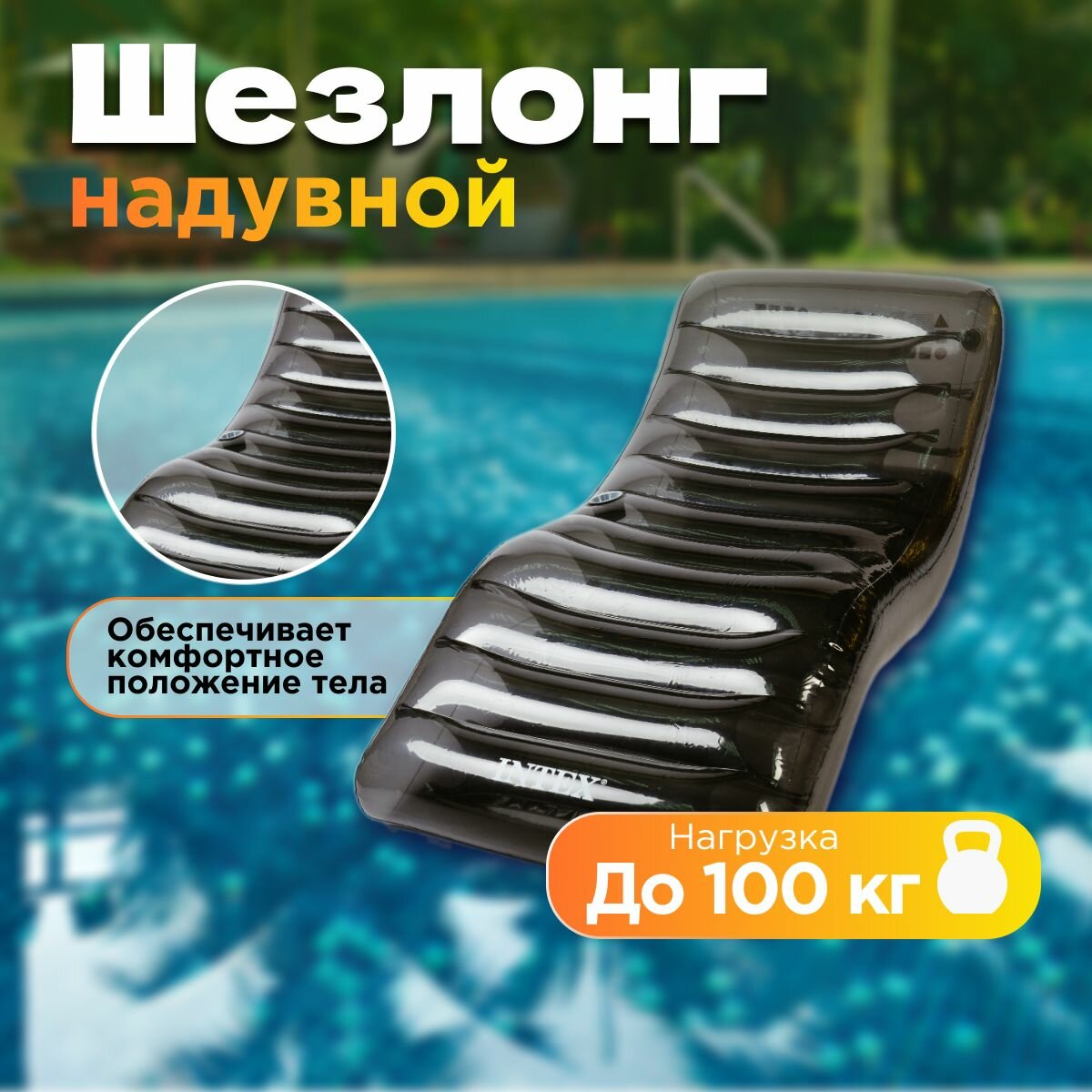 Шезлонг надувной для плавания Intex 56875EU (191х99см), черный интересное:
