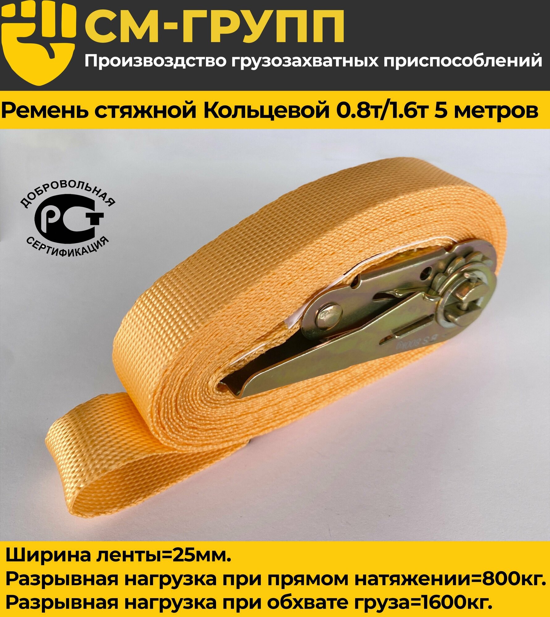 Купить Ремень стяжной кольцевой 25мм 0,8т/1,6т/ 5 метров, с храповым механизмом