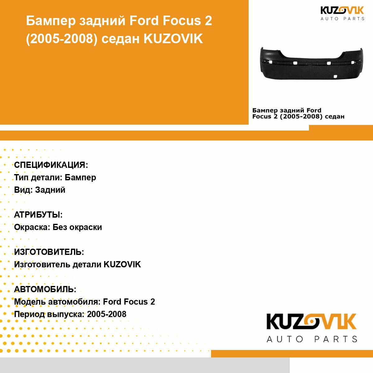 Бампер задний для Форд Фокус Ford Focus 2 (2005-2008) седан, новый под покраску интересное: