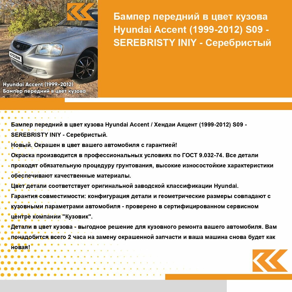 СохранитьБампер передний в цвет кузова для Хендай Акцент Hyundai Accent (1999-2012) S09 - SEREBRISTY INIY - Серебристый интересное: