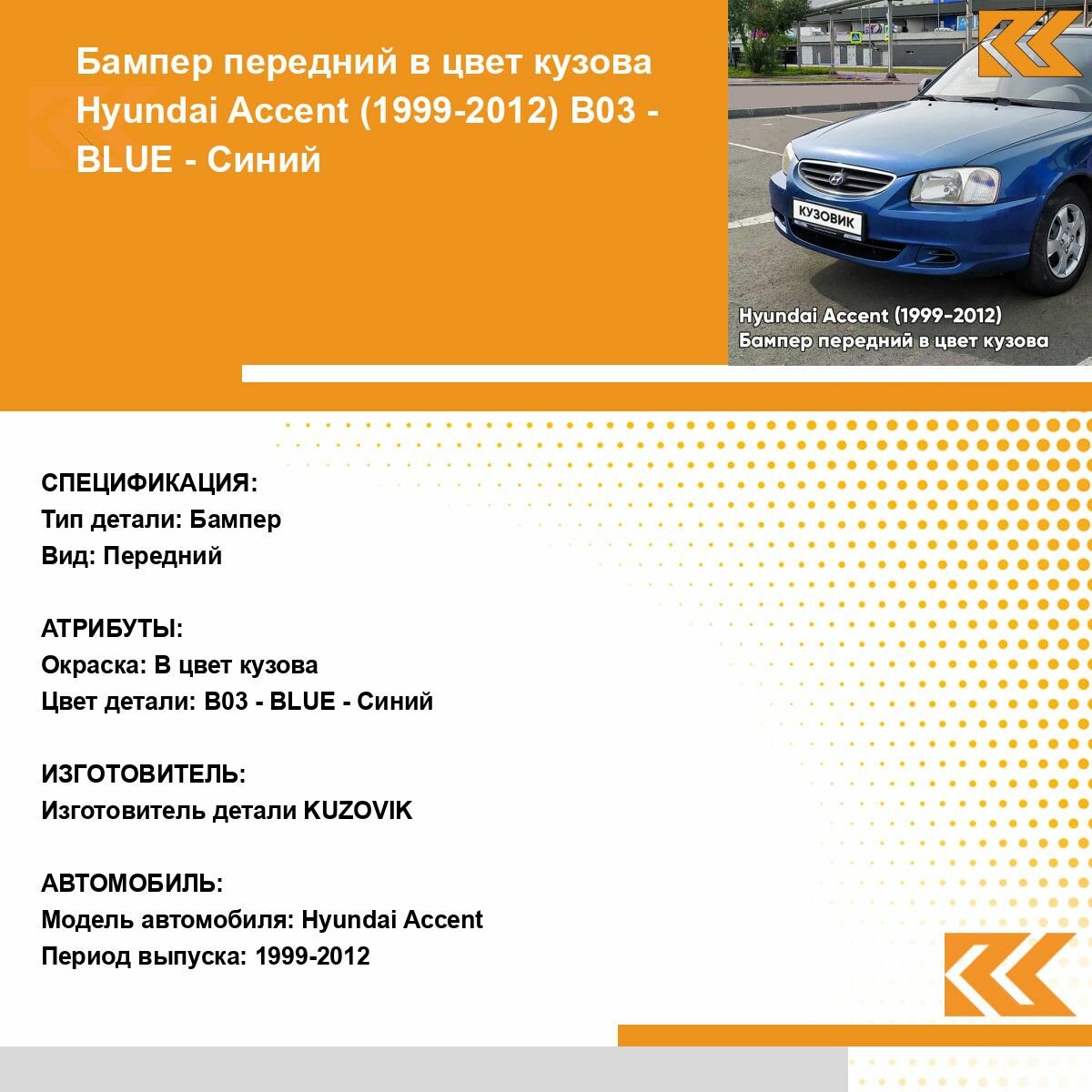 Бампер передний в цвет кузова Hyundai Accent Хендай Акцент B03 - BLUE - Синий