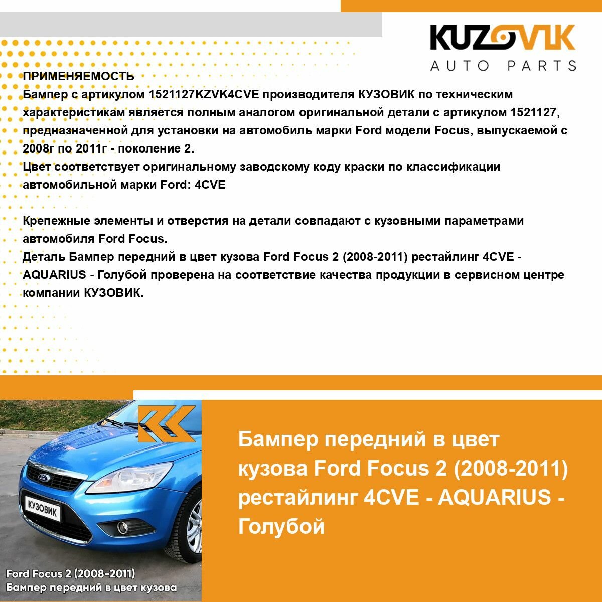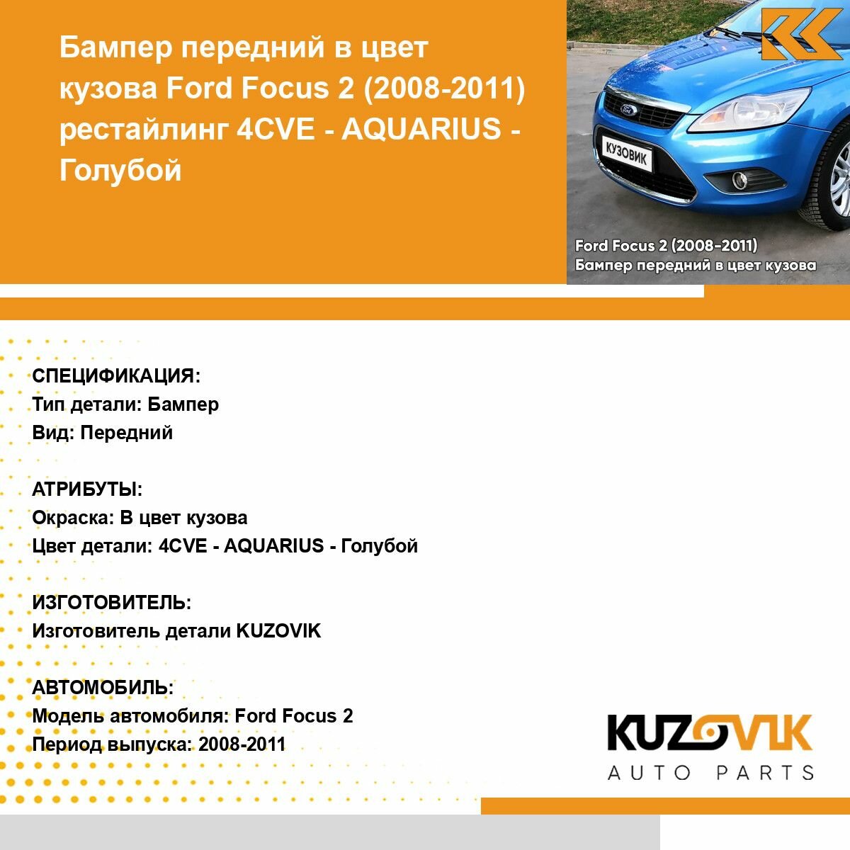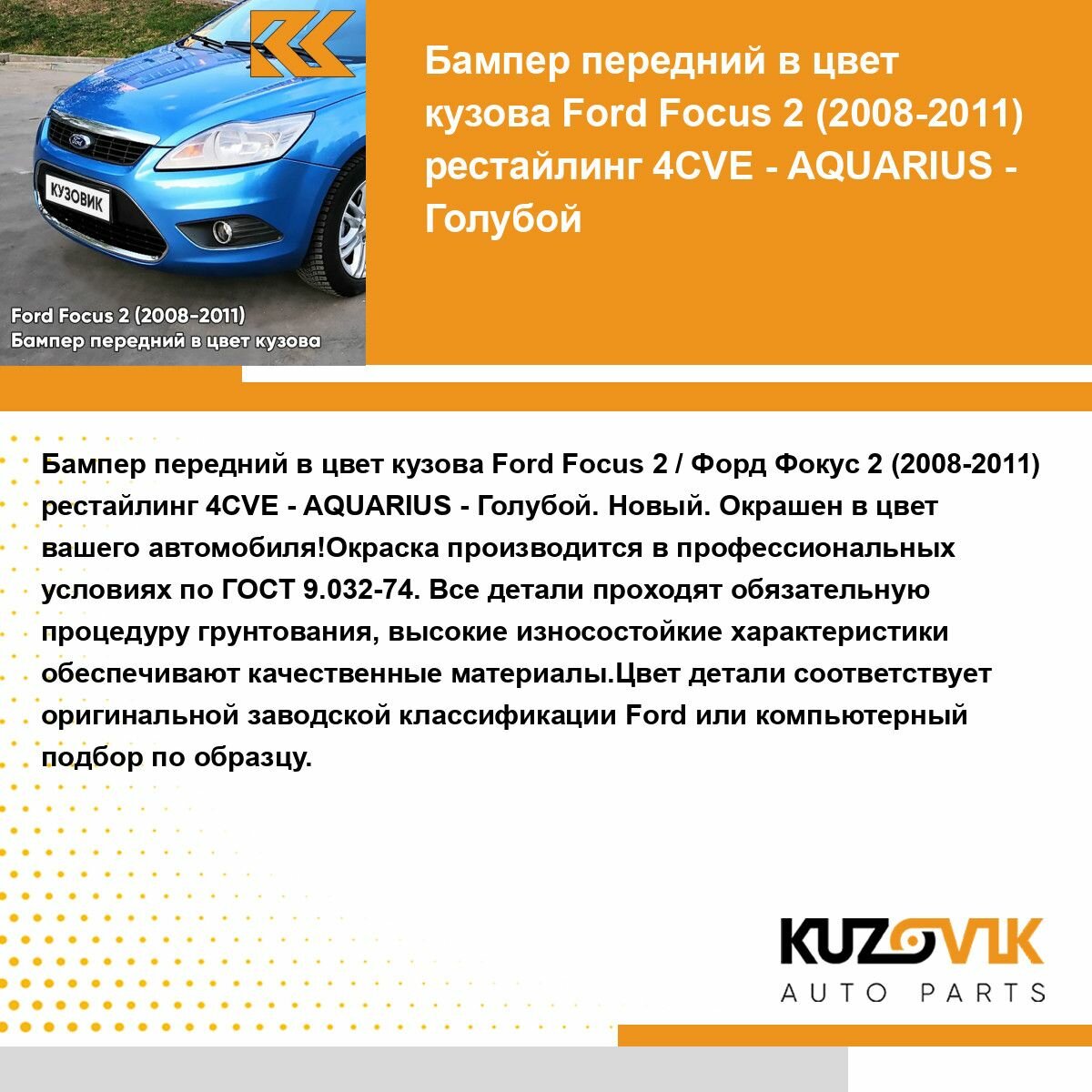 Бампер передний в цвет кузова для Форд Фокус 2 Ford Focus 2 (2008-2011) рестайлинг 4CVE - AQUARIUS - Голубой интересное: