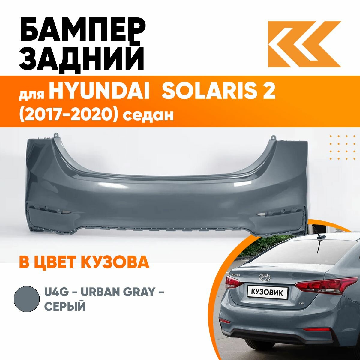 СохранитьБампер задний в цвет кузова для Хендай Солярис 2 Hyundai Solaris 2 (2017-2020) U4G - URBAN GRAY -Серый интересное: