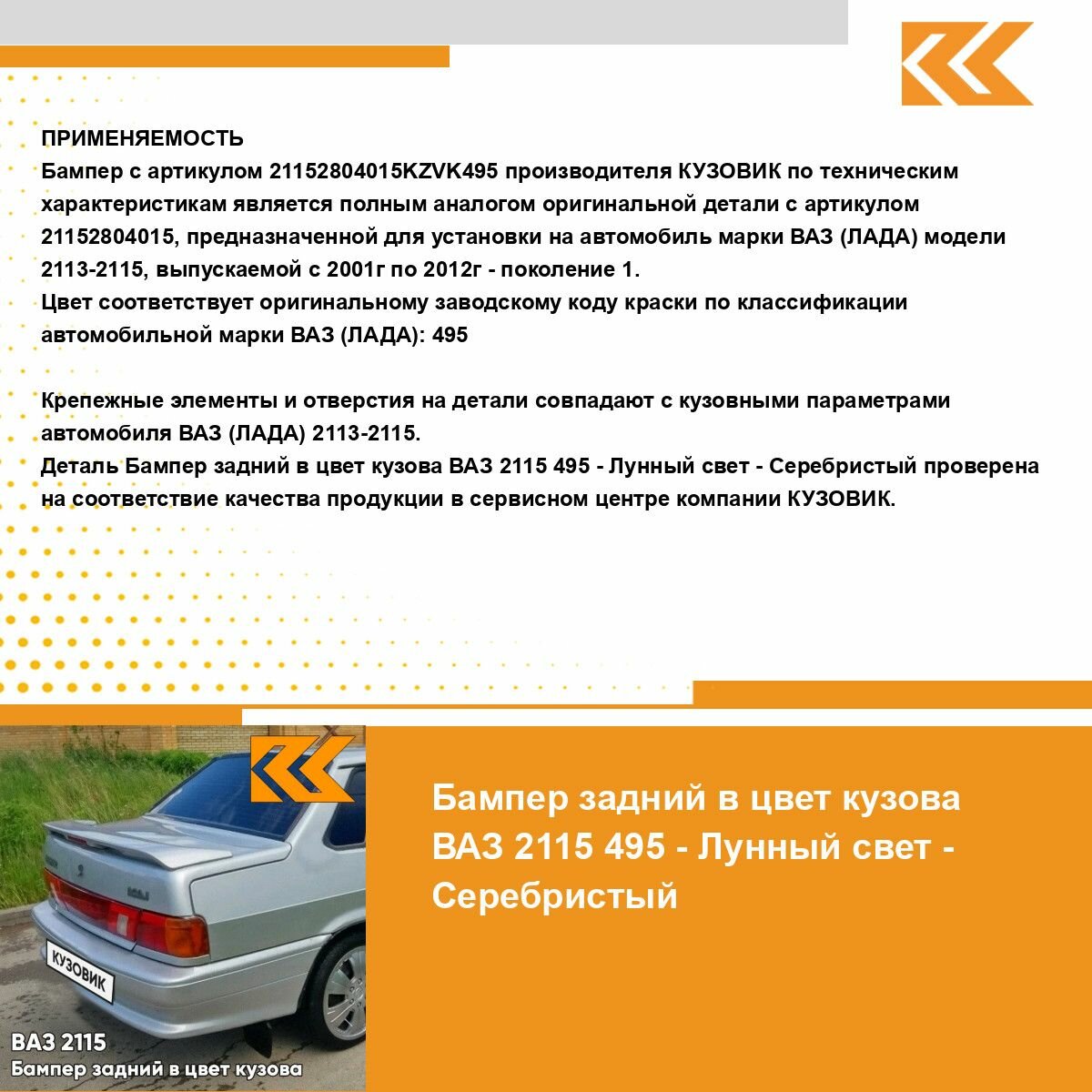 Бампер задний в цвет кузова ВАЗ 2115 495 - Лунный свет - Серебристый интересное: