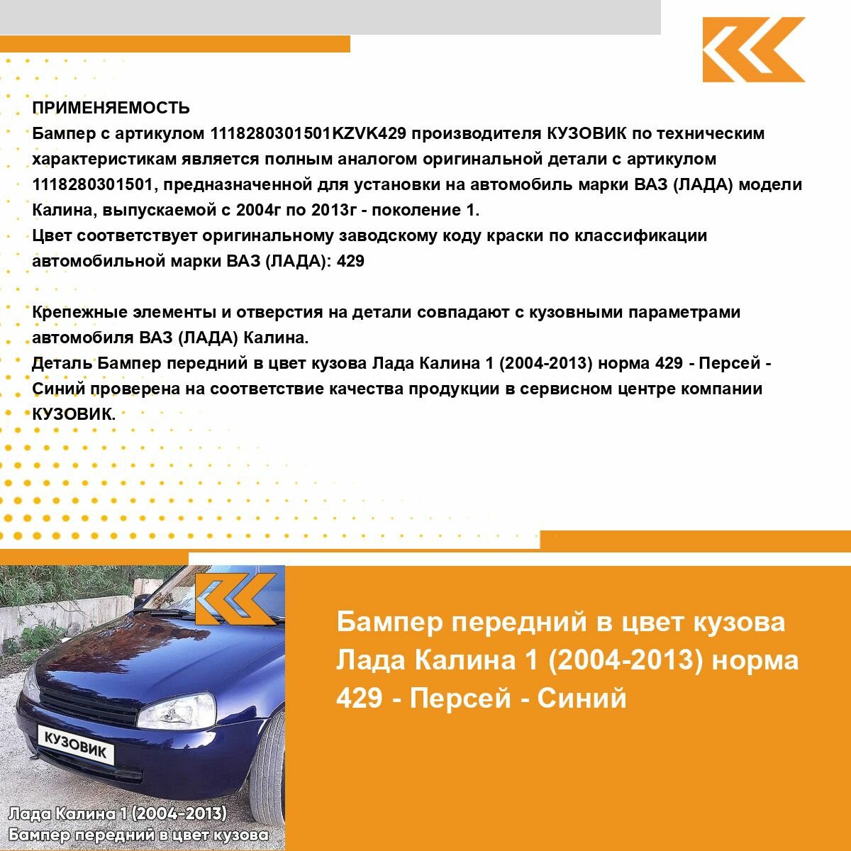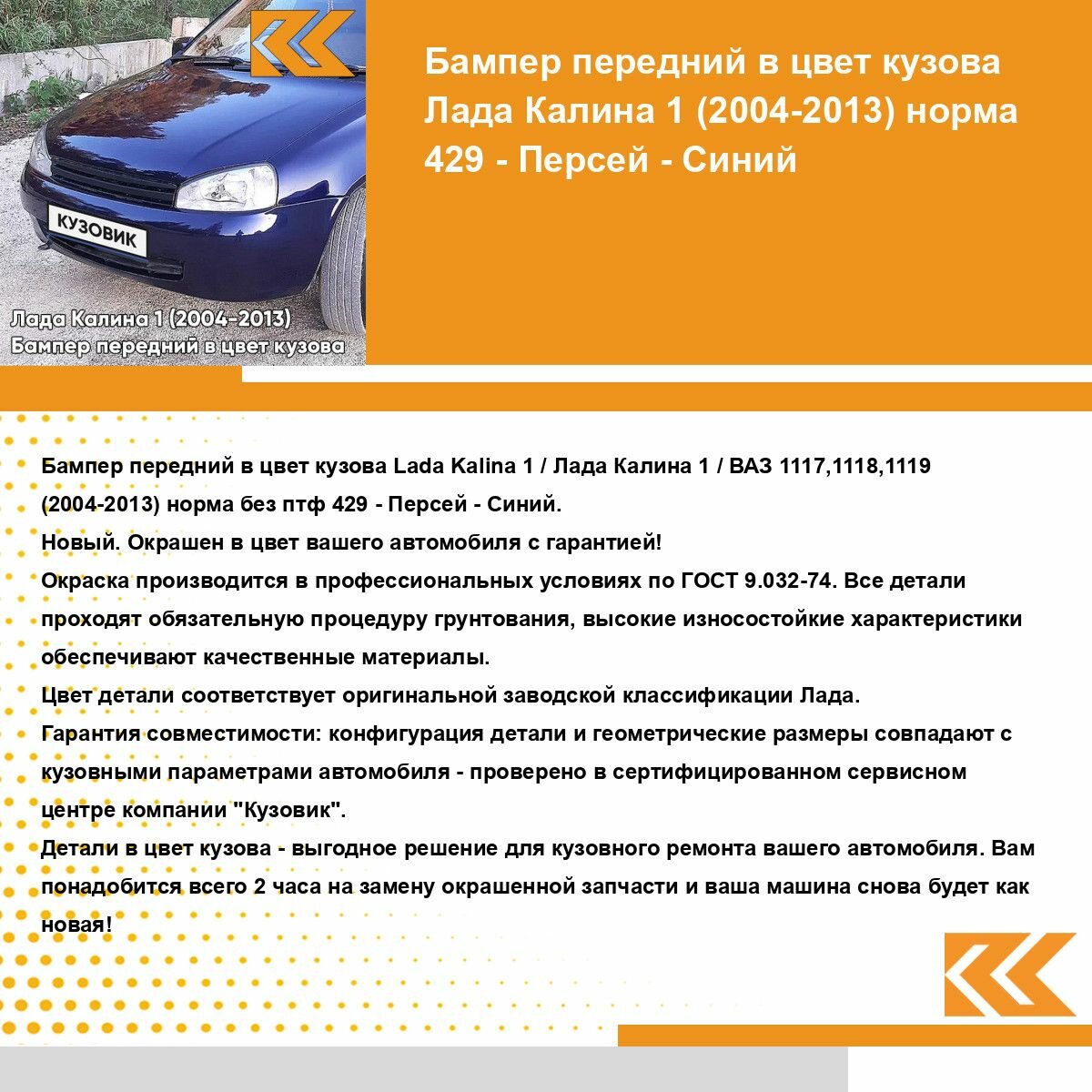 СохранитьБампер передний в цвет кузова Лада Калина 1 норма 429 - Персей - Синий интересное: