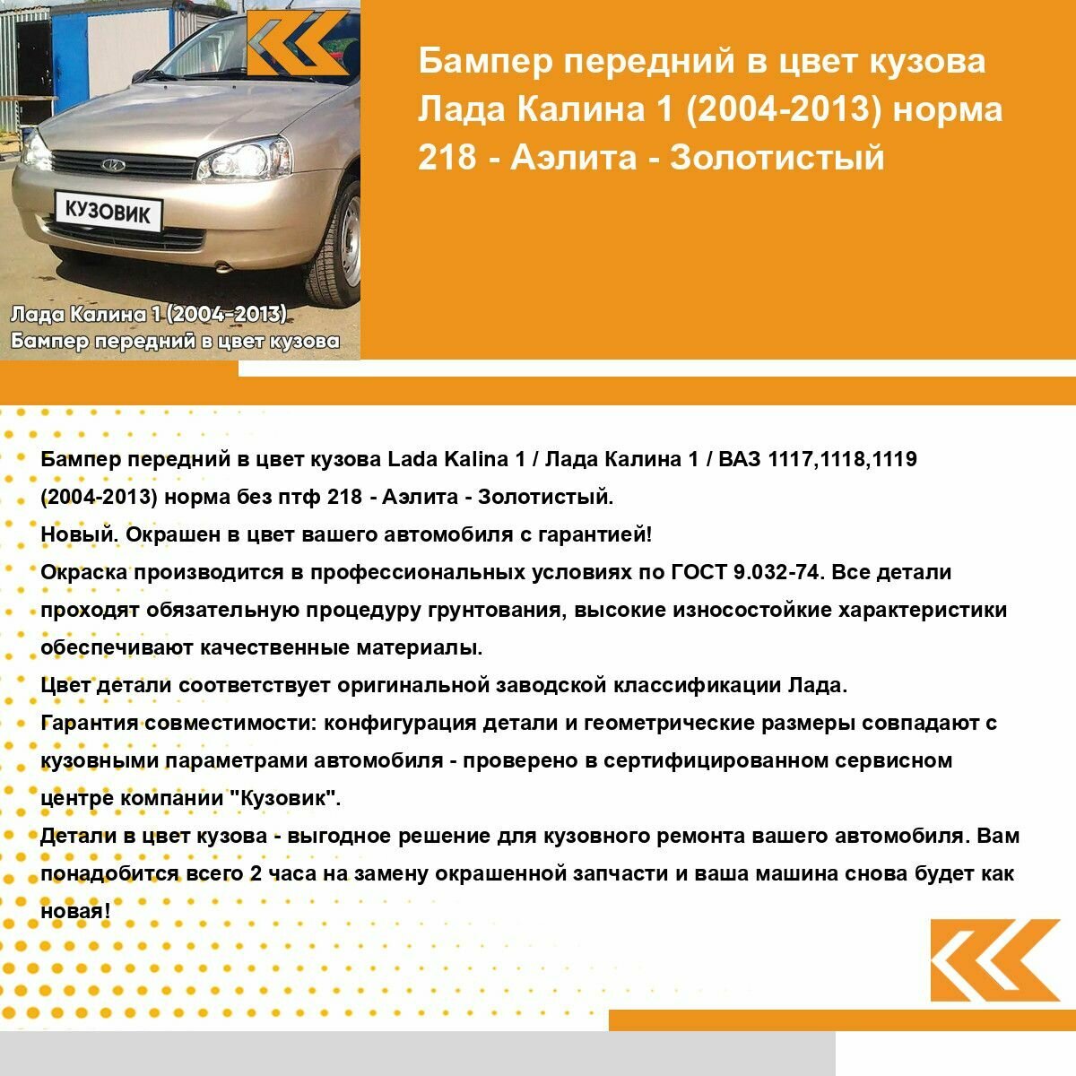 Ниже Вы можете прочитать отзывы на Бампер передний в цвет кузова Лада Калина 1 норма 218 - Аэлита - Золотистый, ознакомится с подробными характеристиками, посмотреть интересные обзоры и фотографии на Бампер передний в цвет кузова Лада Калина 1 норма 218 - Аэлита - Золотистый.