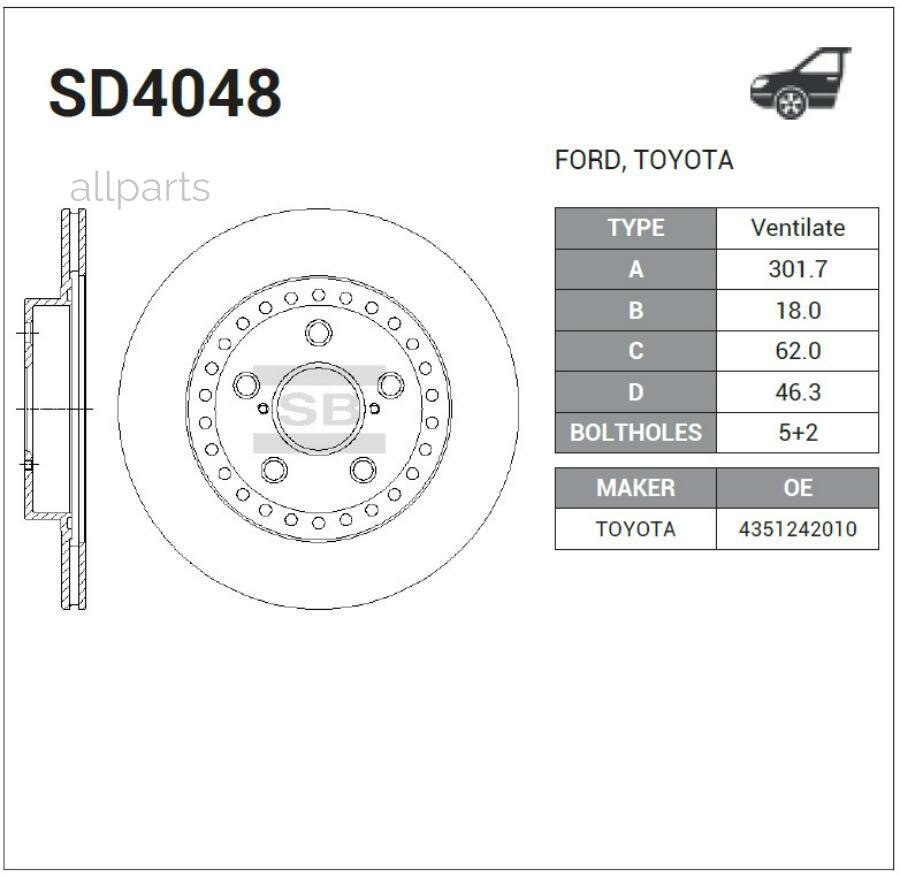 Sd4048_диск Тормозной Передний! Toyota Rav 4 2.0 94-01 Sangsin brake арт. SD4048 интересное: