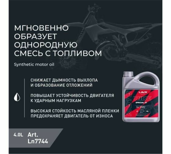 Моторное Масло Lavr Moto Ride Special 2Т Fd, 4 Л LAVR арт. LN7744