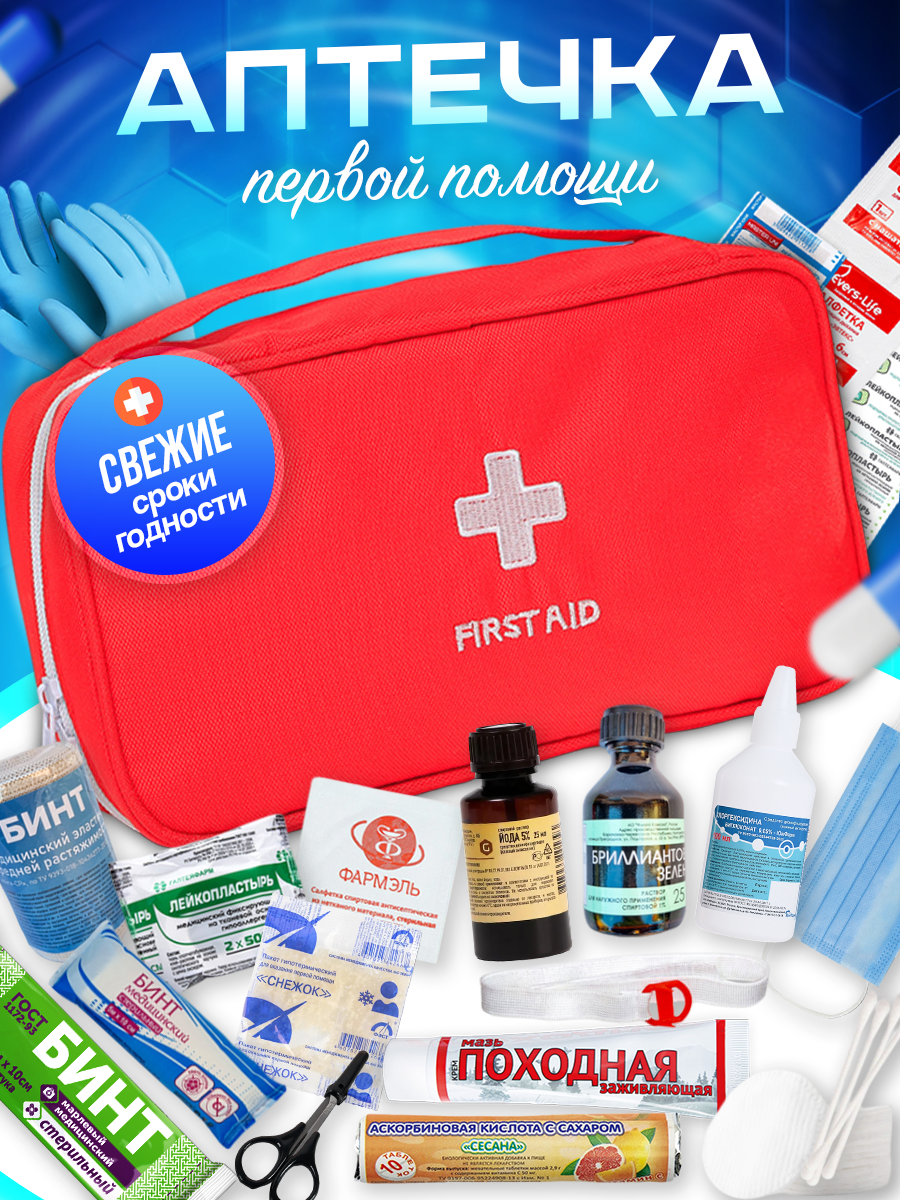 Автомобильная аптечка первой медицинской помощи (с наполнением) - универсальная, домашняя, дорожная, походная. интересное: