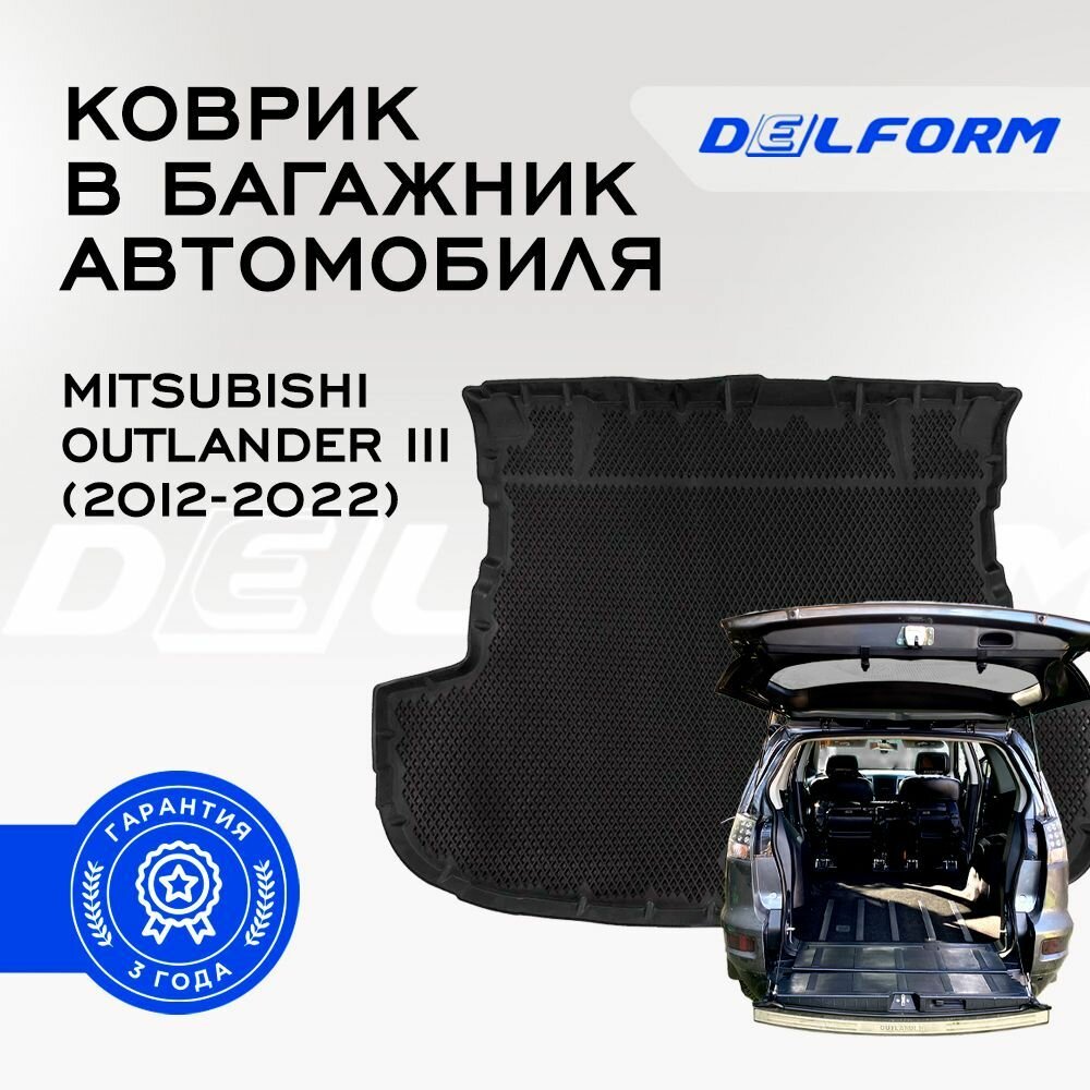 Коврик в багажник Mitsubishi Outlander III (2012-н.в.) / EVA 3D коврик в Митсубиши Аутлэндер 3 с сотами и бортами Delform