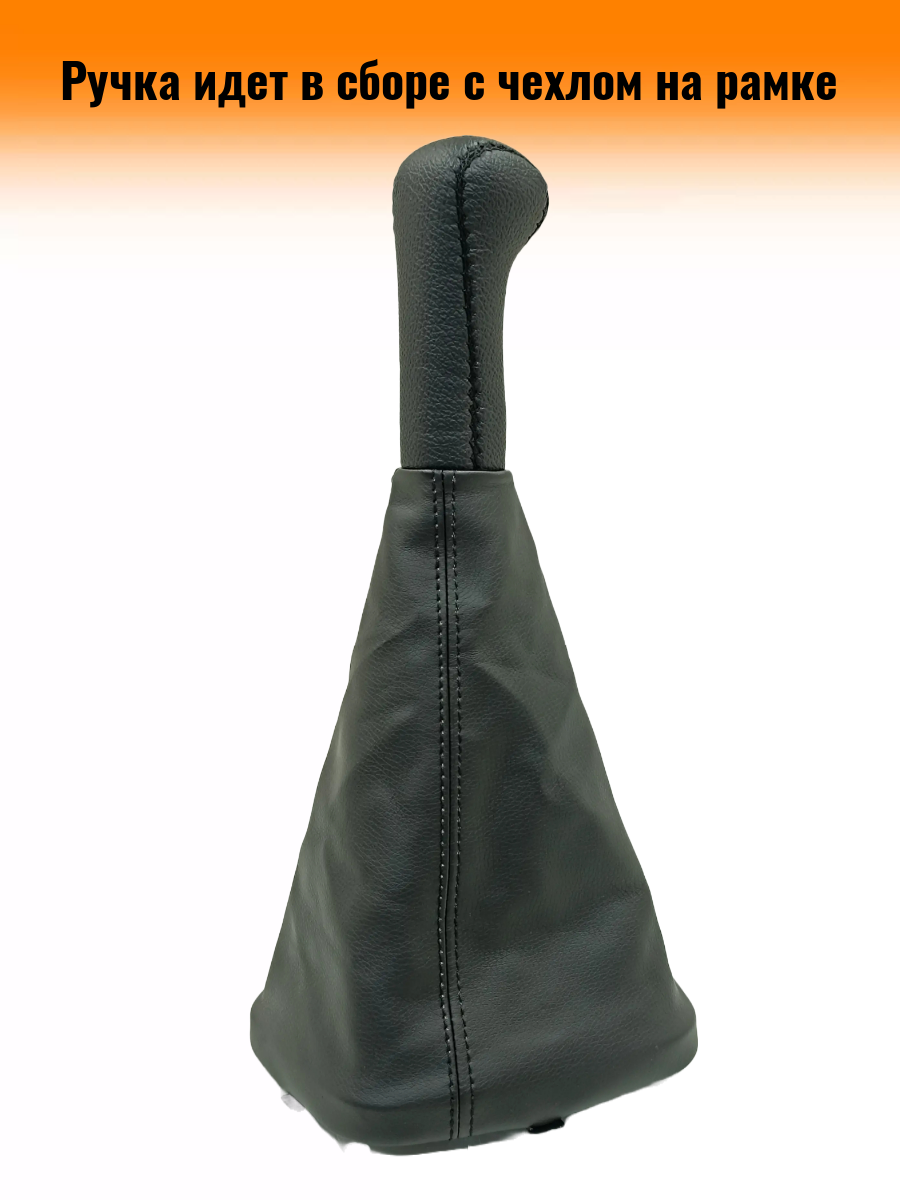 Ручка КПП с чехлом PREMIUM на ВАЗ-2110, 2111, 2112 (Лада, Lada) , ручка коробки переключения передач черный (серая строчка)
