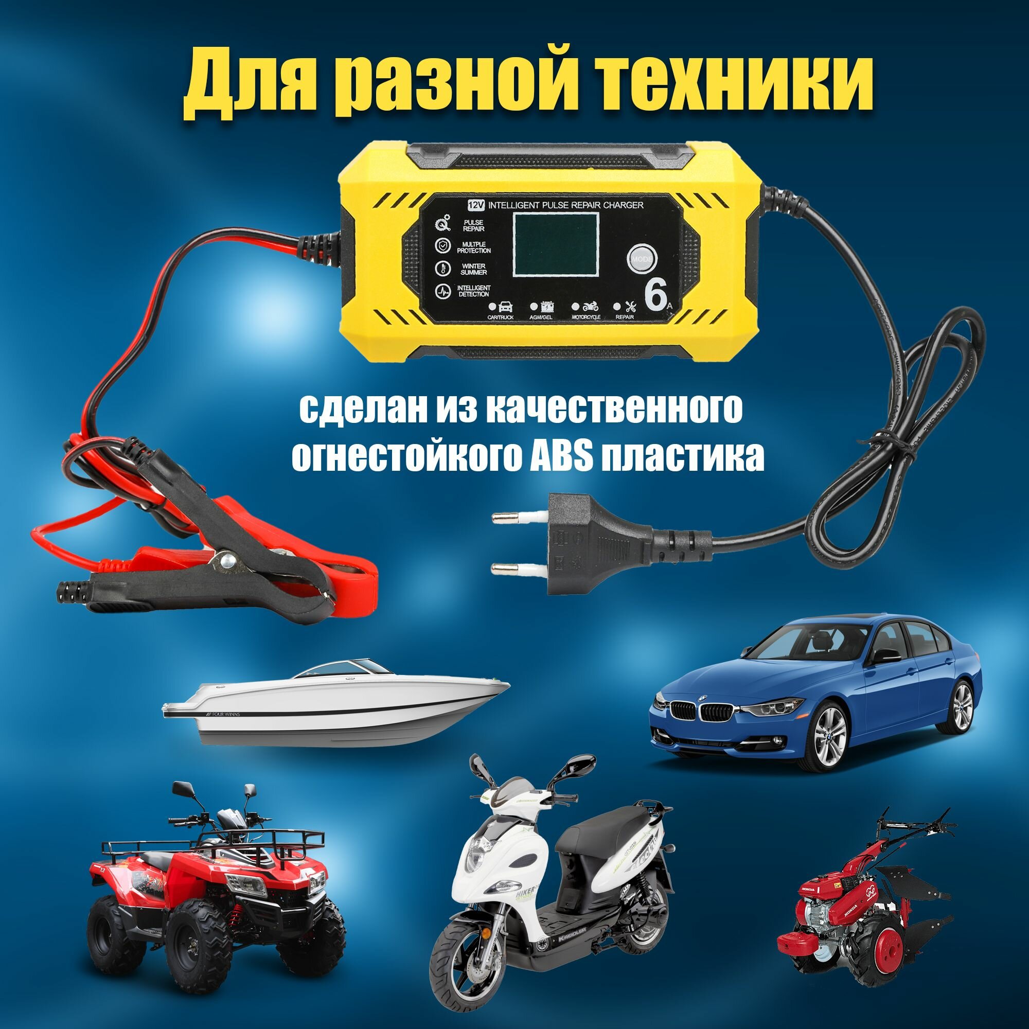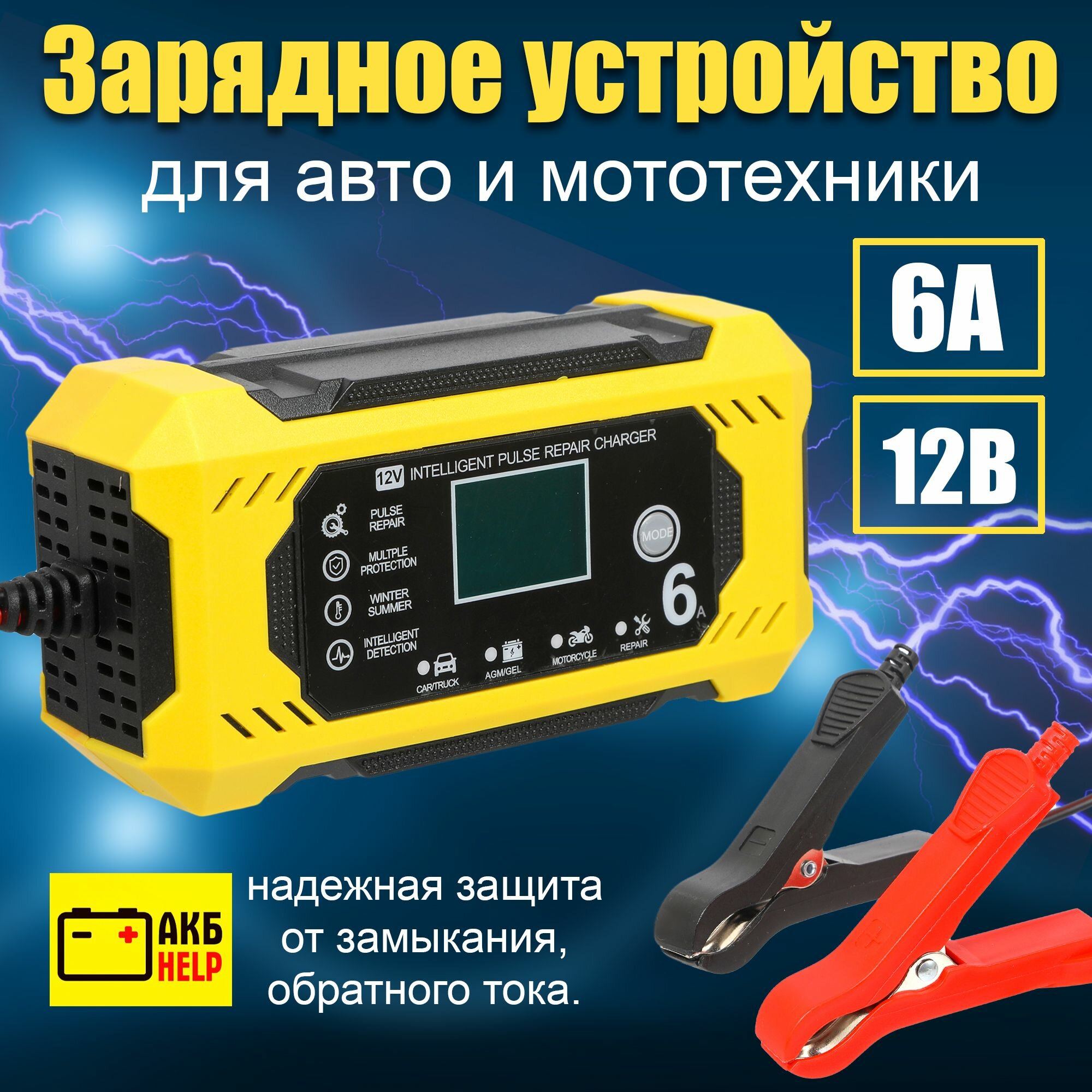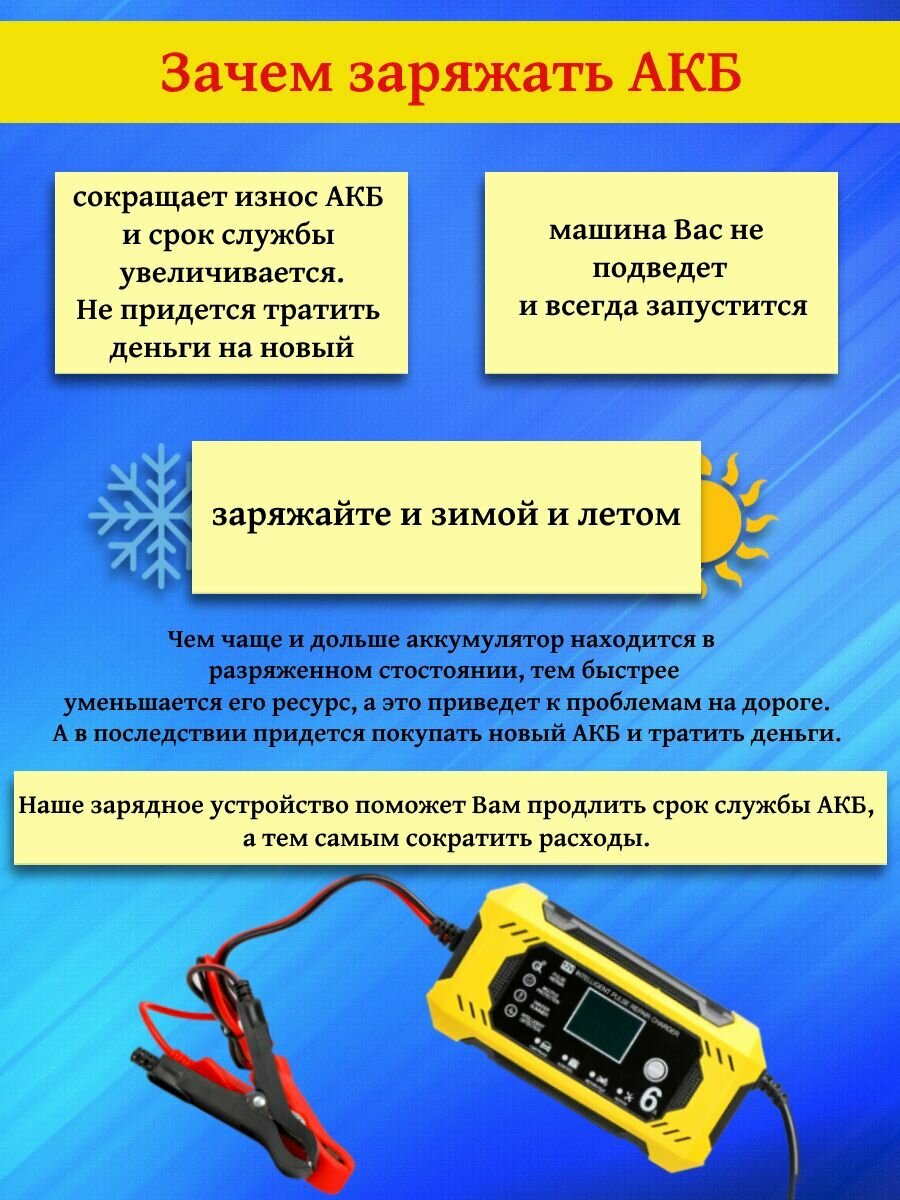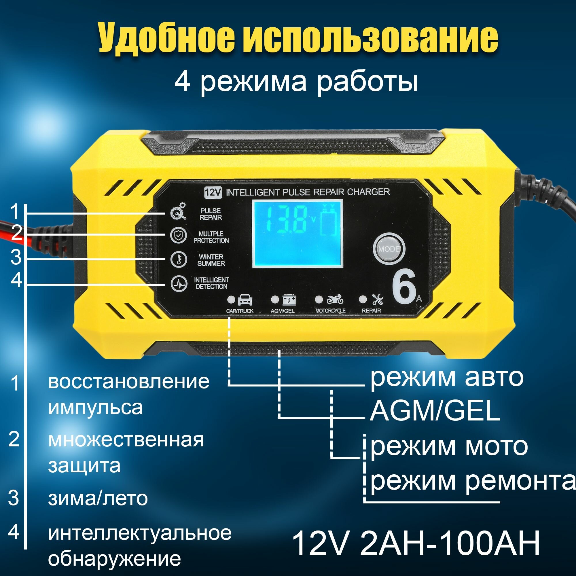 Зарядное устройство для аккумулятора автомобиля 12v/6A 4 Режима интересное: