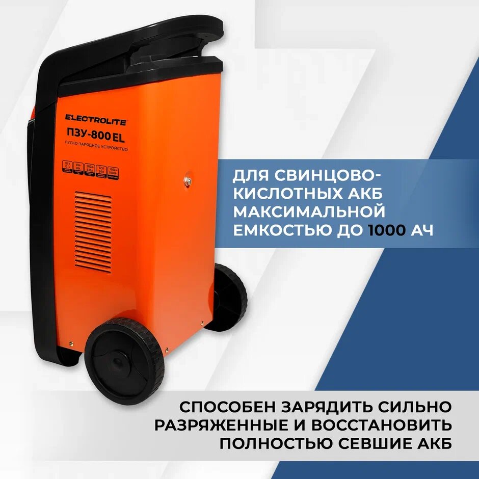 Купить Зарядное устройство для аккумулятора / Пусковое устройство для автомобиля / Зарядное устройство для автомобильного аккумулятора / Пускозарядное устройство для автомобиля Electrolite ПЗУ-800EL ( 12/24 В 630 А 100-1000 А*ч )