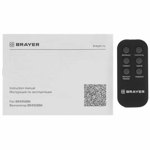 BRAYER BR4958BK Колонный вентилятор BRAYER, механ.упр.,пульт ДУ,вращение90°,мощ-ть50Вт,защита от перегрева интересное: