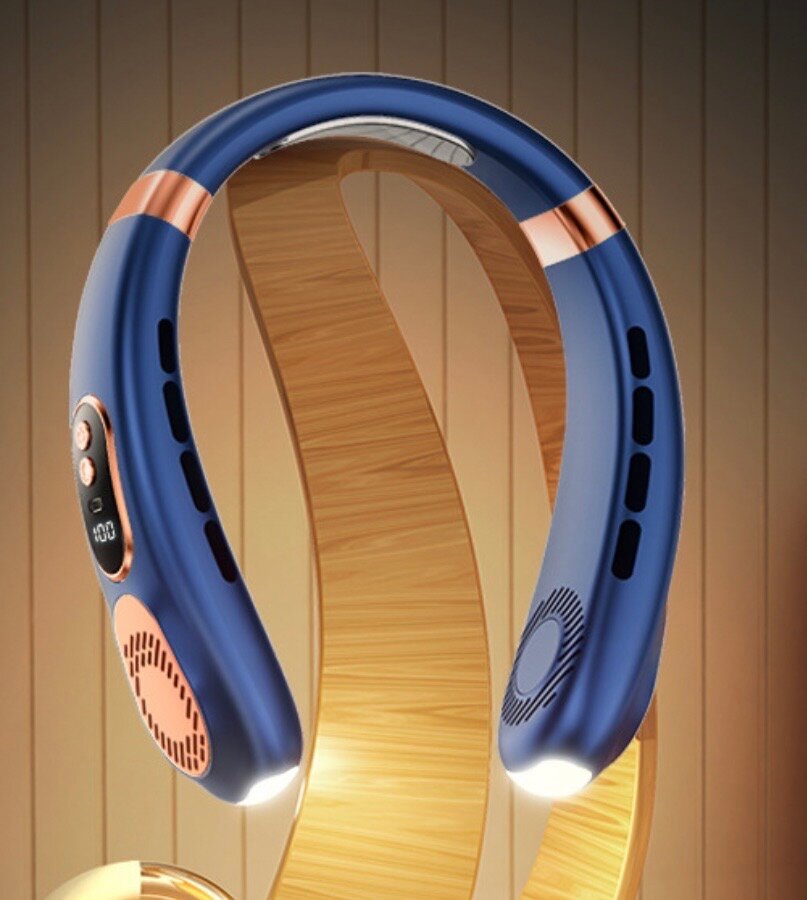 Вентилятор на шею СИНИЙ НОВЫЙ, безлопастной, 100 скоростей на колесике, USB