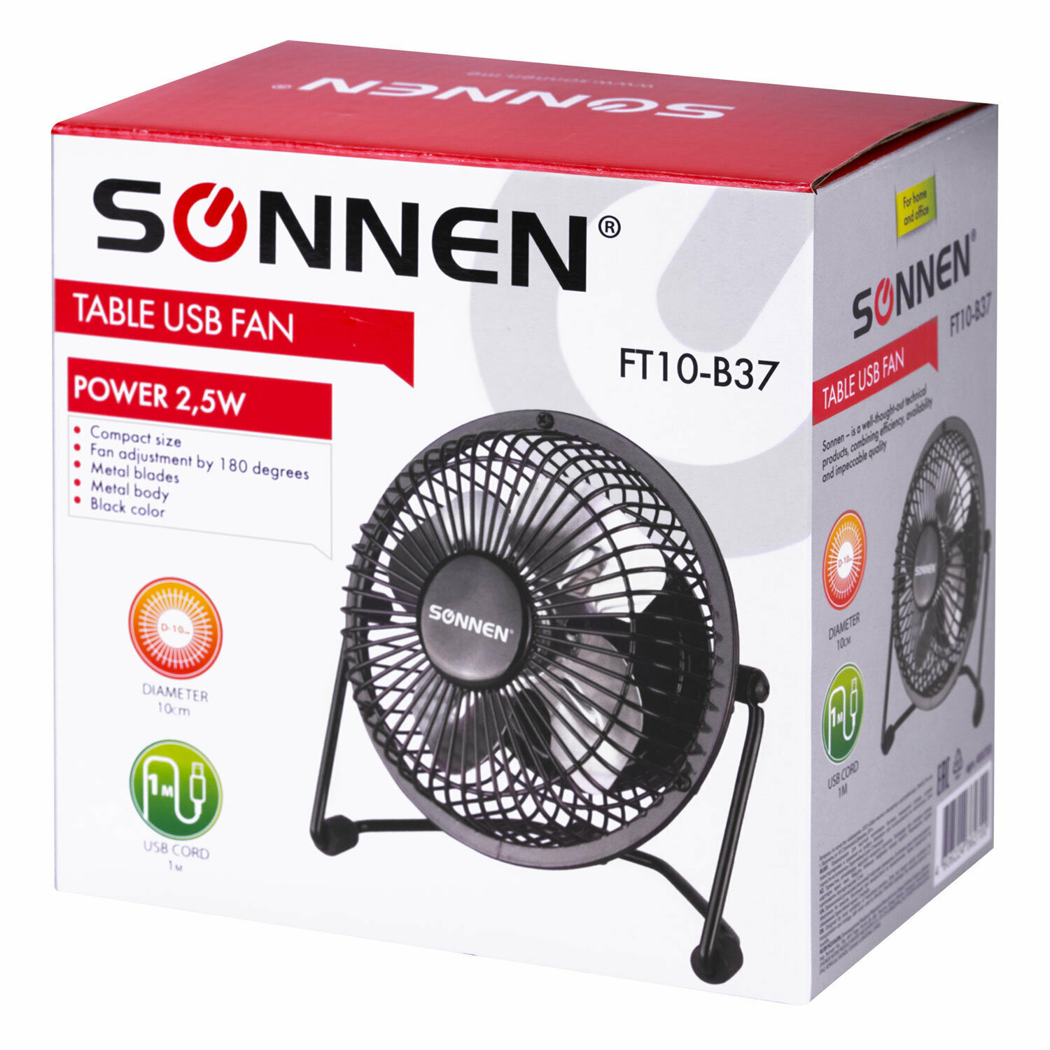 Вентилятор настольный бытовой комнатный для дома и офиса Usb Sonnen Ft10-b37а, d=10 см, 2,5 Вт, металл, черный, 455733 интересное: